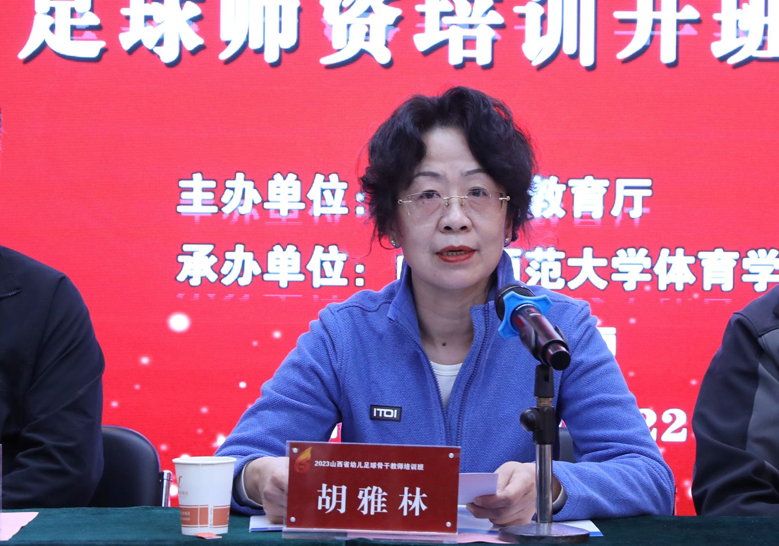 开班仪式上,德赢vwin体育官网院党委书记卫建平致欢迎辞,他表示培养校园足球师资新生力量和开展高质量体育教师培训是师范大学责无旁贷的使命,德赢vwin体育官网将在推进幼儿足球普及方面加倍努力,为推动幼儿足球全面持续发展做出贡献。山西省教育厅二级巡视员胡雅林在讲话中指出,校园足球整体发展事态良好,教育部高度重视幼儿足球培训工作,幼儿足球未来发展前景广阔。她要求全体参训学员提高认识,坚持立德树人理念;强化责任,发挥师资队伍的关键作用;认真学习,提升专业理论和实践能力。德赢vwin体育官网院长郑旗教授部署安排了此次培训工作并强调培训了培训班的安全和纪律等相关要求,鼓励大家积极探索幼儿足球发展规律,促进幼儿在足球游戏活动中培养兴趣、享受乐趣、增强体质。