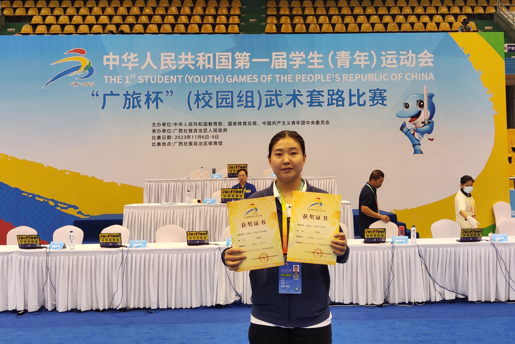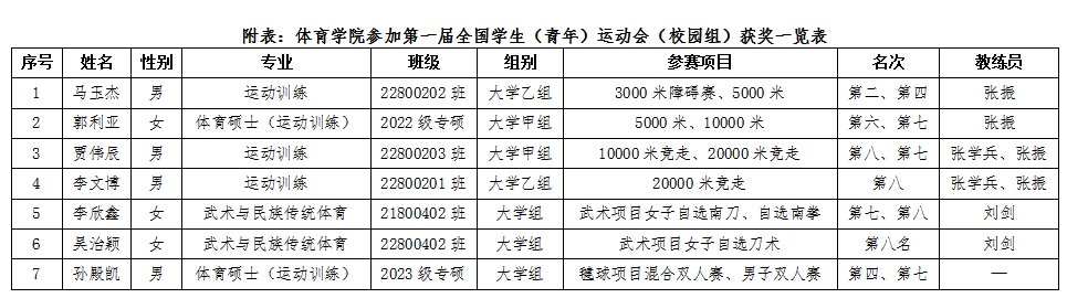 据悉,本届学青会以“逐梦新时代 青春更精彩”为主题口号,是检验体教融合成果、展现当代学生健康体魄和运动技能的重要平台,更是促进我国青少年竞技体育后备人才培养的重要举措。学青会期间,还举办了第一届全国学生(青年)运动会科学论文报告会。(院办 田径队 武术队供稿)