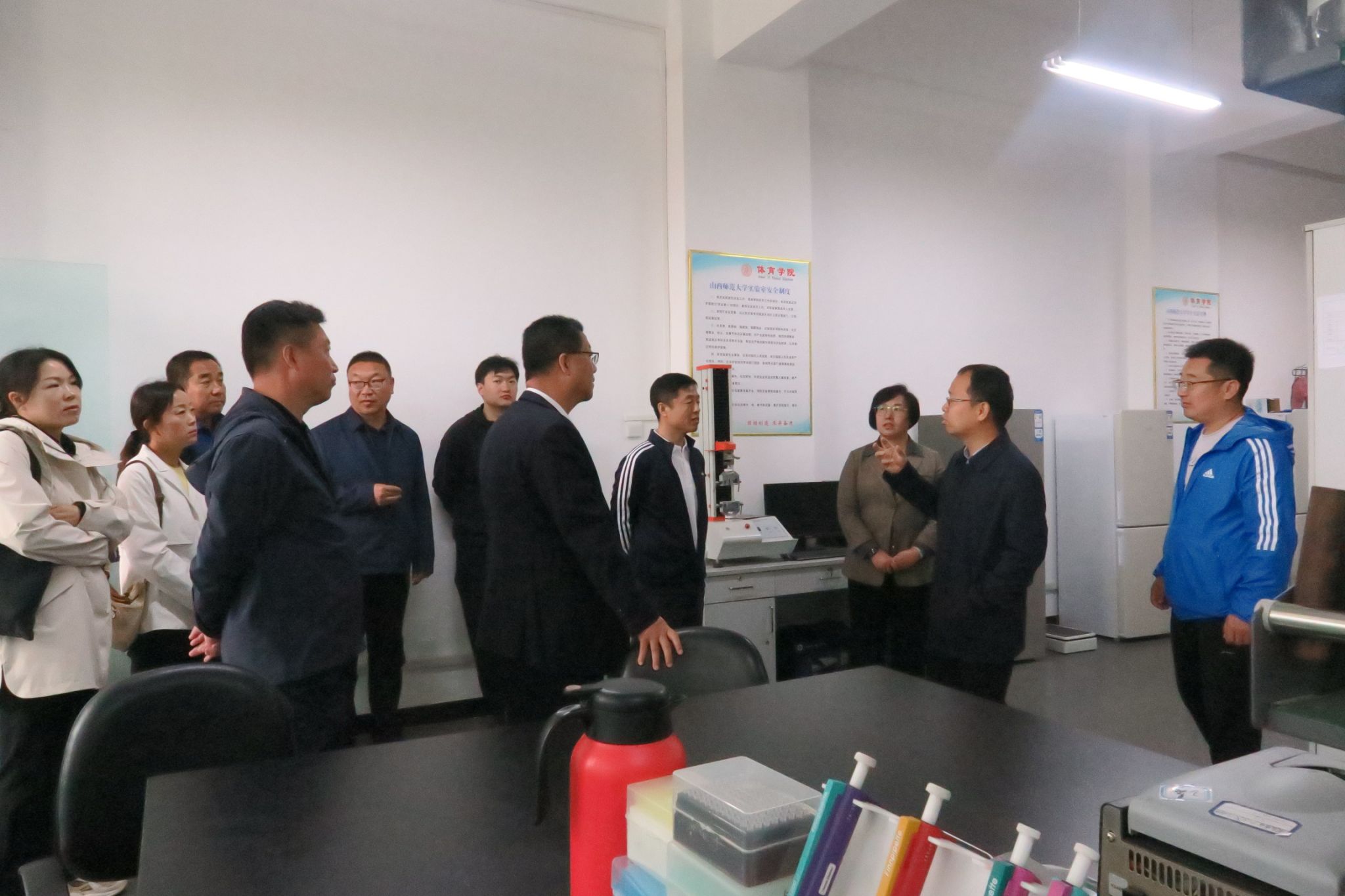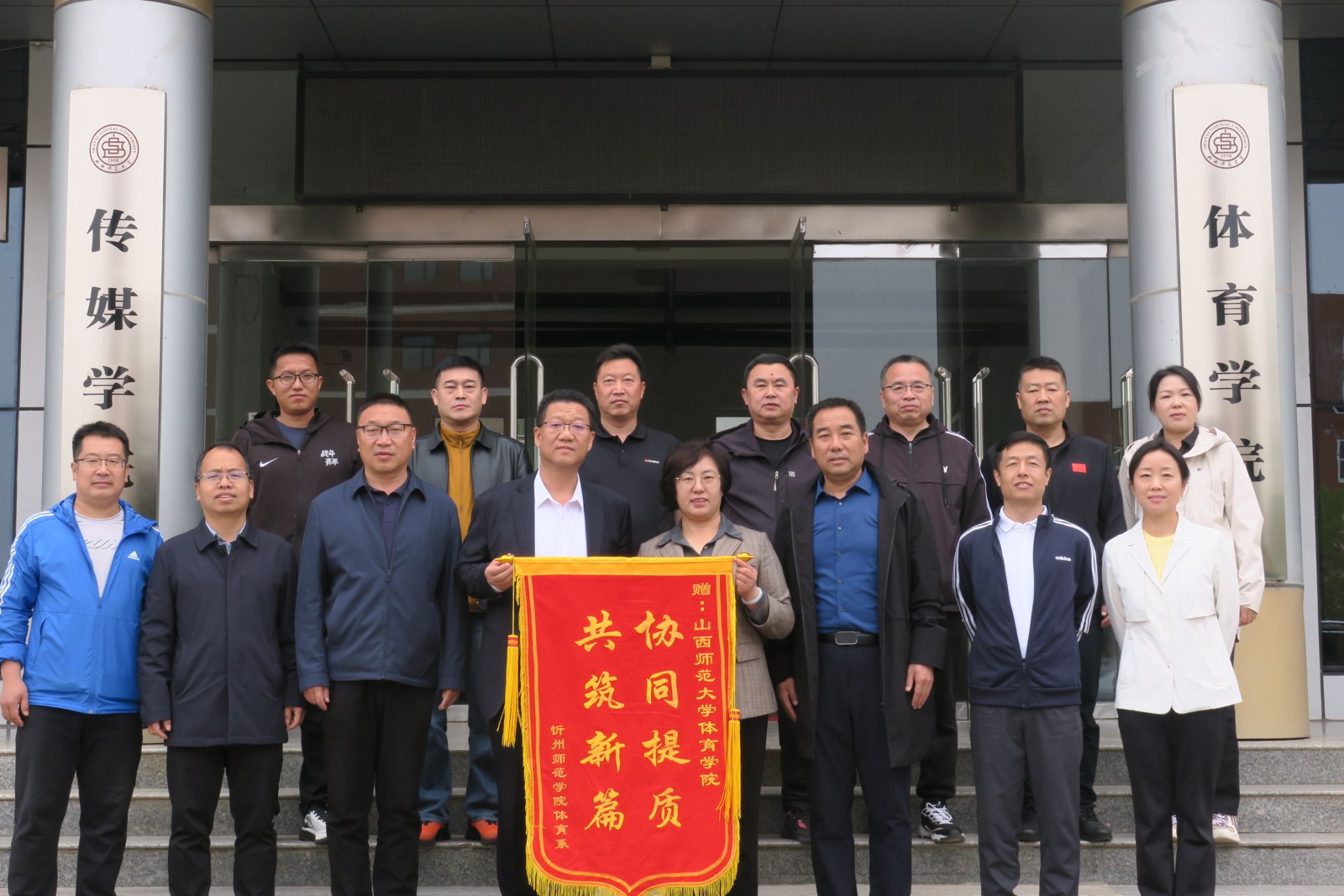 双方在虚拟教研室建设达成初步共识后,忻州师范学院体育系樊青美书记向德赢敬赠锦旗,并进行合影留念,随后樊书记一行参观了德赢的VR实验室与运动生物力学实验室和混合式教学工作室,对德赢实验室近年来的建设和国家一流课程的建设的工作给予了肯定,对《排球专项理论与实践》的课程理念、课程内容、教学模式等方面给予了高度评价,表示要将一流课程建设经验分享到忻州师范学院。