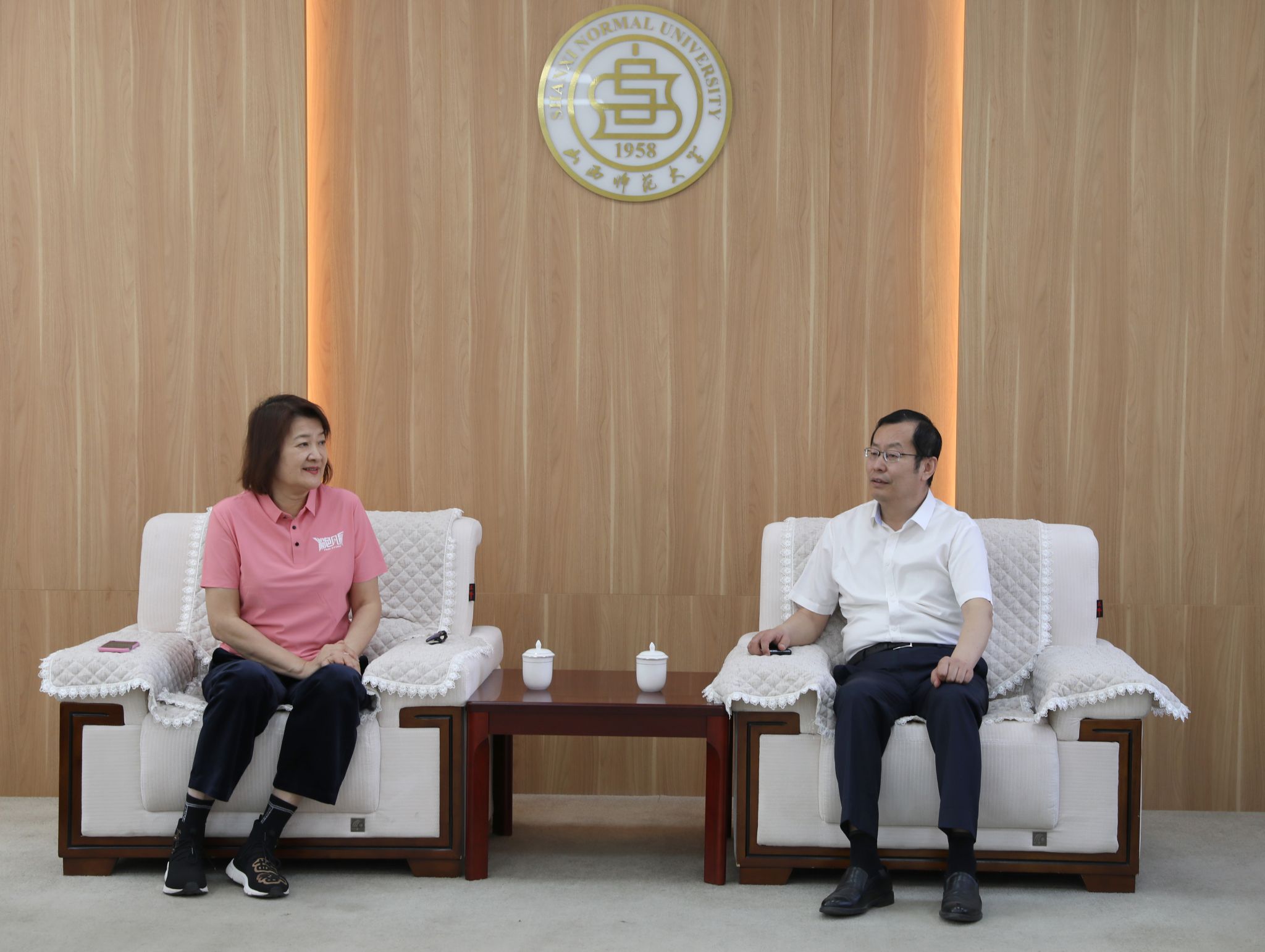 4月26日,原中国女篮队长、中国篮球名人堂成员宋晓波女士一行莅临德赢vwin体育官网指导工作。校党委常委、副校长范哲锋会见了宋晓波女士,为其颁发了德赢vwin体育官网客座教授聘书。德赢vwin体育官网班子成员、师生代表与宋晓波进行了座谈,并就学院高水平篮球队建设、“粉色风暴”篮球联赛进校园活动达成了初步意向,期间学院师生与宋晓波进行了深入交流和互动。