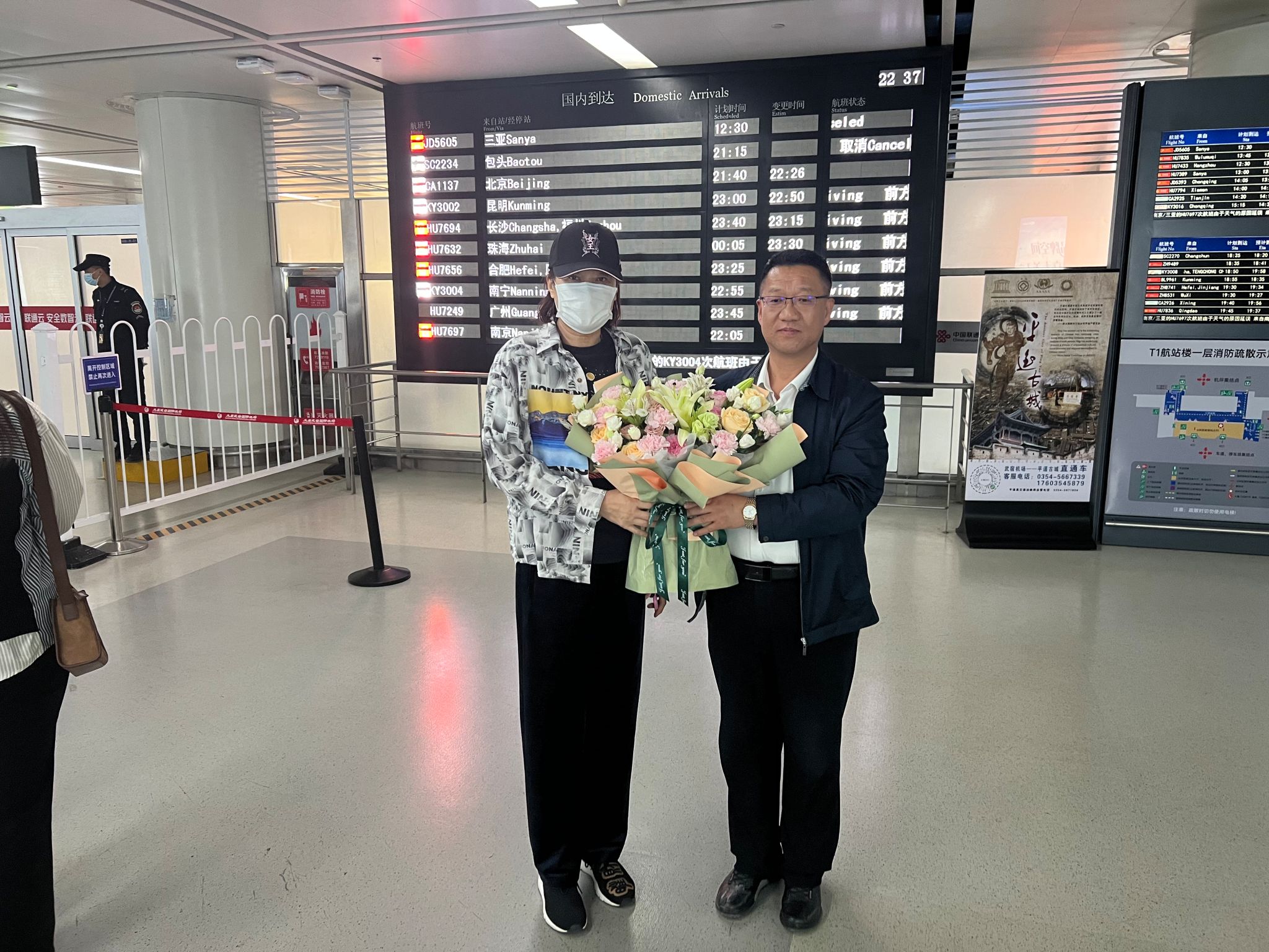 德赢vwin体育官网院长王彤教授在机场航站楼为宋晓波女士献花
