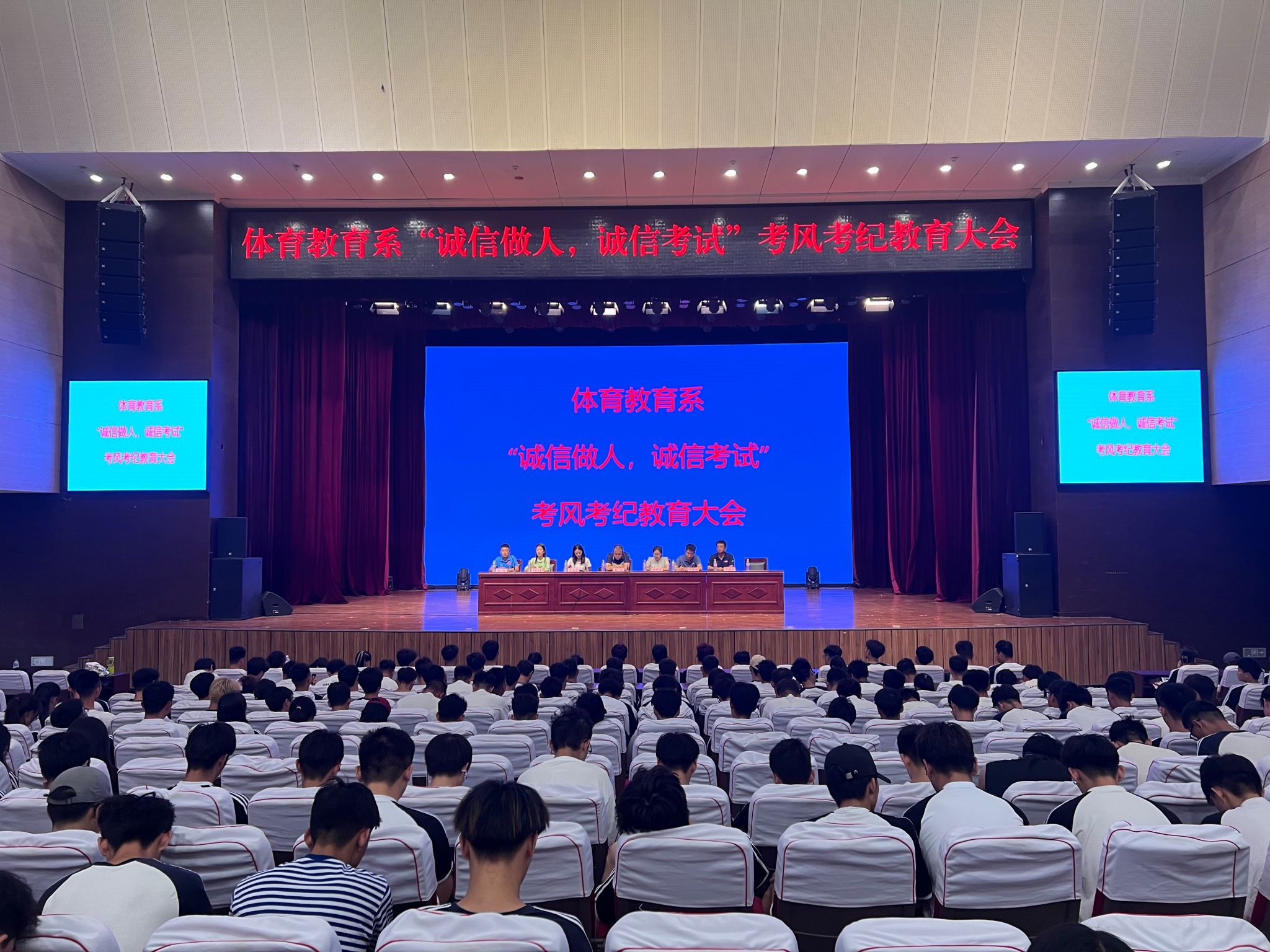 本次主题教育大会让学生了解到学校严肃考纪的相关规定,并在学生的心中树立了诚信考试、文明考试的理念。(体育教育系供稿)