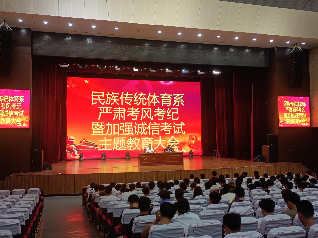 为了加强学风建设,严肃考风考纪,营造公平、公正、诚实守信的考试环境,促进学生健康成长和全面发展,民族传统体育系于2024年6月19日下午5点在南区科学会堂召开了严肃考风考纪加强学习动员大会。