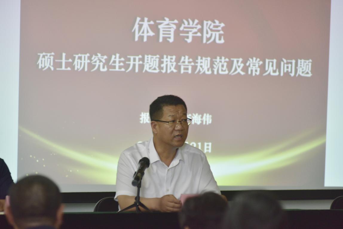 6月21日下午,德赢vwin体育官网硕士研究生指导教师系列培训在运动心理实验室正式启动,院长王彤教授出席培训并讲话,分管研究生培养工作的副院长李海伟教授作了题为《德赢vwin体育官网硕士研究生开题报告规范及常见问题》的第一讲培训,部分研究生导师和2023级全体研究生聆听了报告。