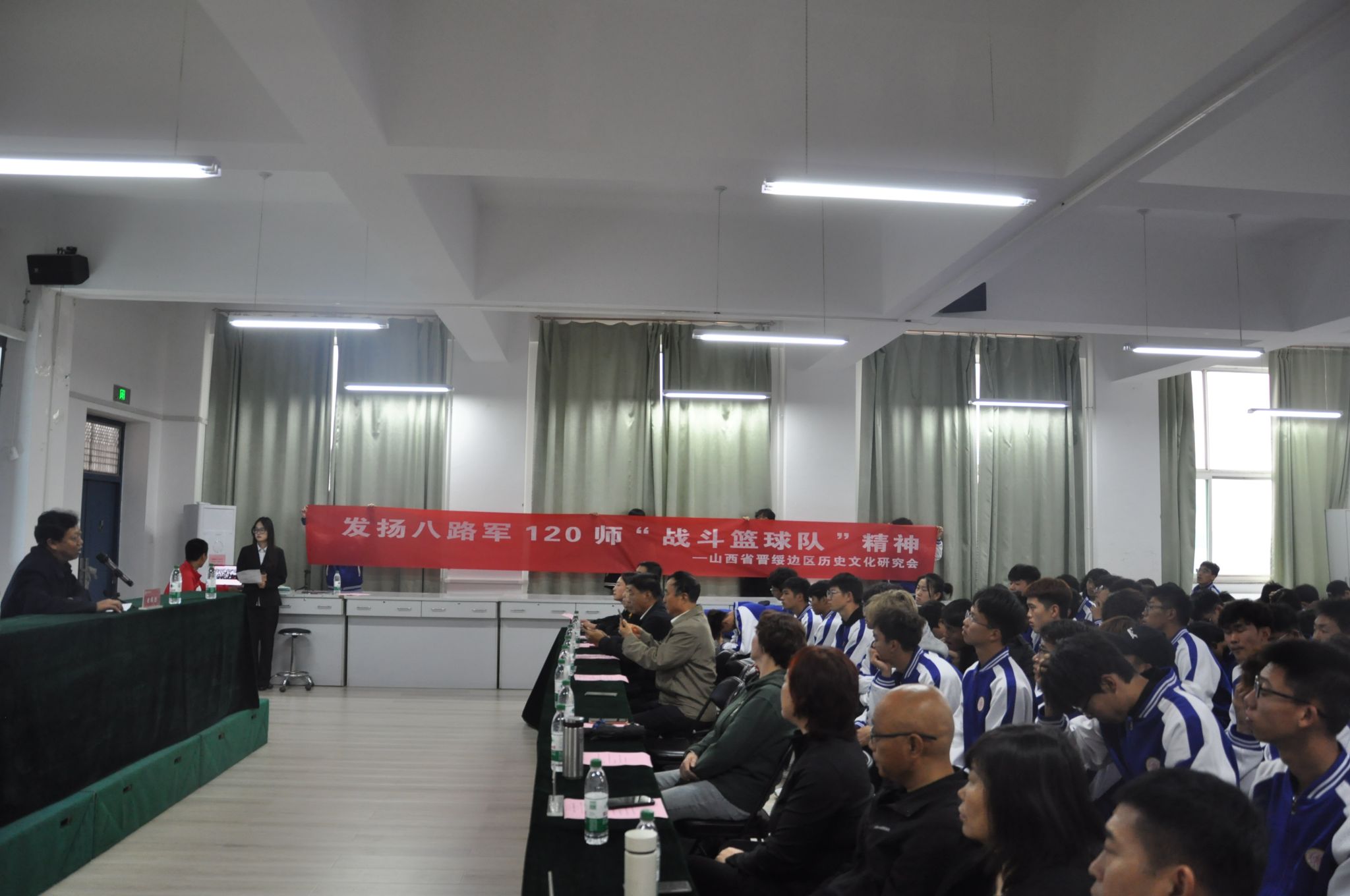此次大讲堂以篮球为载体,搭建红色赛事文化交流的平台,旨在传承红色基因,弘扬红色赛事文化,激发大学生的奋斗精神。活动现场座无虚席,来自不同专业的大学生们齐聚一堂,共同聆听“120师战斗篮球队”的红色故事,感受革命先辈们的战斗精神。