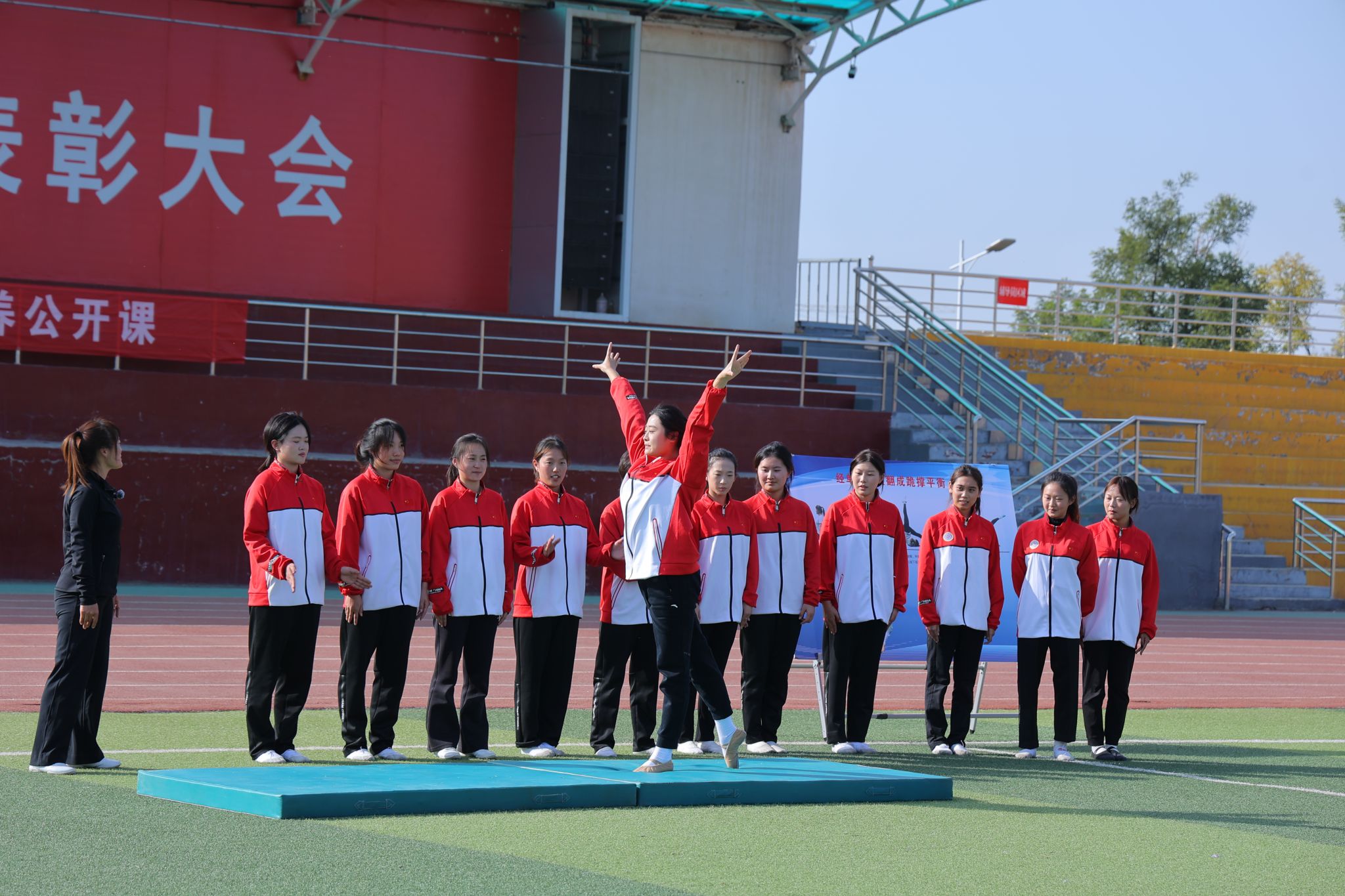 2024年10月25日14:00,德赢vwin体育官网“铸体育魂・炼精品课・树教研风” 系列第三阶段“凝新聚力共打磨・教学新秀促成长”第三次展示活动在南区田径场展开。本次公开课授课教师为德赢运动训练系卫玲玲老师,授课内容为《体操-经单肩后滚翻成跪撑》。我校教学督导委员会委员张少颖教授作了点评。德赢vwin体育官网领导、全体教师、部分学生齐聚田径场观摩了此次公开课,此次公开课由德赢vwin体育官网副院长李向前主持。
