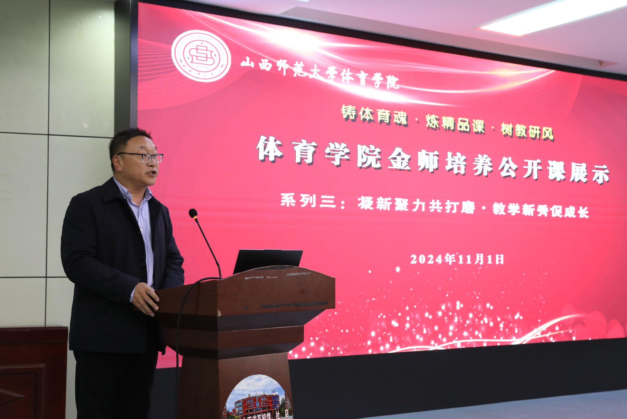 2024年11月1日14:00,德赢vwin体育官网“铸体育魂・炼精品课・树教研风” 系列第三阶段“凝新聚力共打磨・教学新秀促成长”第四次展示活动在图书馆报告厅展开。本次公开课授课教师为德赢社会体育系教师任磊博士,授课内容为《运动兴趣》。我校社科部副部长、马克思主义学院赵秀芳教授作了点评,德赢vwin体育官网领导、全体教师、部分学生齐聚现场进行了观摩,此次公开课由德赢vwin体育官网副院长李向前主持。
