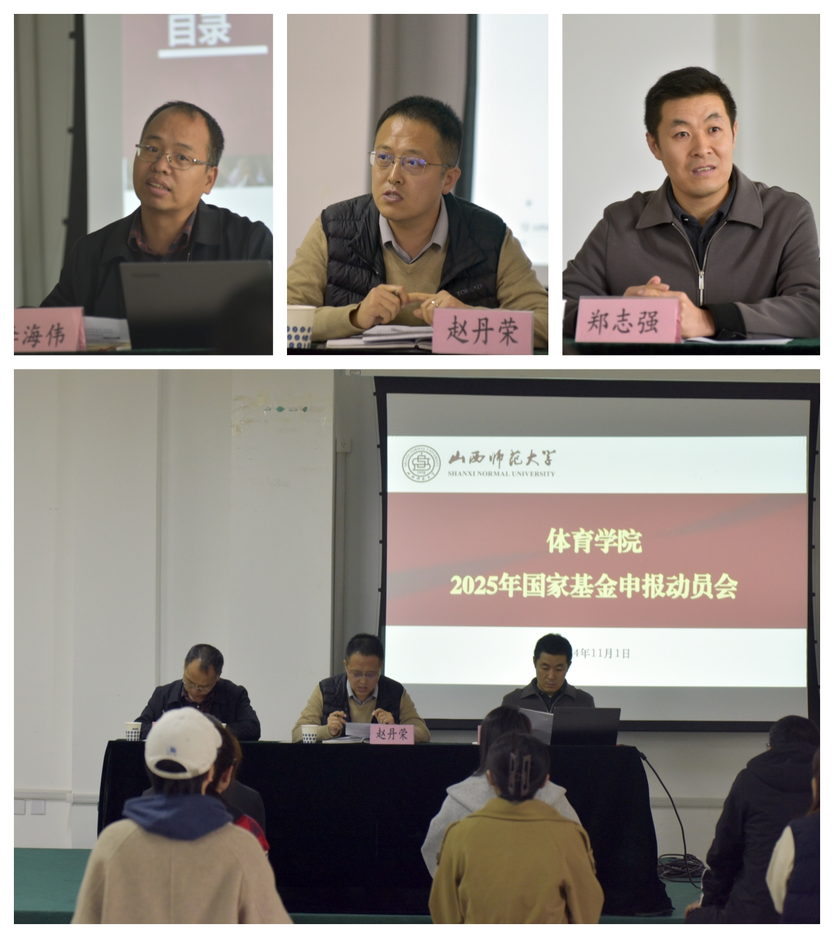 2024年11月1日下午,德赢vwin体育官网在运动心理实验室召开国家基金申报动员会,传达落实校社科部2025年国家社科基金申报任务和精神,会议由教师科研发展中心主任郑志强主持。副院长李海伟就会议内容和部署安排向教师作简要说明。他强调,国家基金申报既是教师专业化发展的内在需求,也是助力学科建设和内涵发展之策。学院将整合资源,健全保障激励措施,推动德赢国家课题申报工作再上台阶。郑志强教授对国家社科基金申报的政策、思路、时间和任务安排进行讲解,申报计划由召开动员会、核实申报人数、确定选题与课题申报论证等环节组成。社科部副部长赵丹荣教授高度肯定德赢国家社科基金取得的成果,并期待德赢2025年国家基金申报能够取得新的进展和突破。