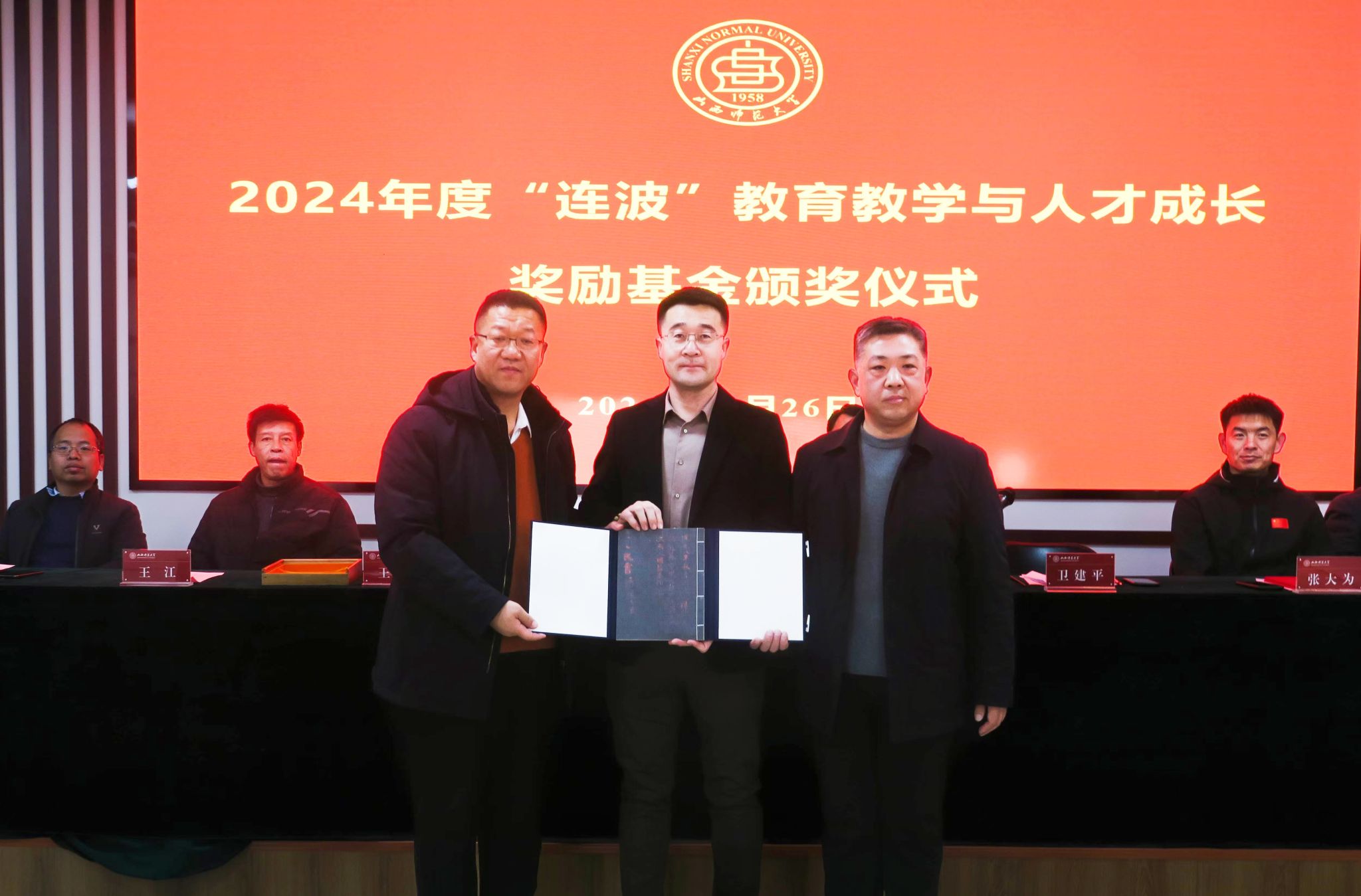 2024年12月26日,德赢vwin体育官网2024年度“连波”教育教学与人才成长奖励基金颁奖仪式在德赢vwin体育官网心理实验室举行。校国内合作部部长陈向波,德赢vwin体育官网杰出校友、网博雅乐(北京)文化传媒有限公司董事长曹连波出席仪式,并为获奖师生颁发了证书和奖金。德赢vwin体育官网全体领导班子成员与获奖师生和学生代表参加了仪式。仪式由德赢vwin体育官网党委书记卫建平主持。