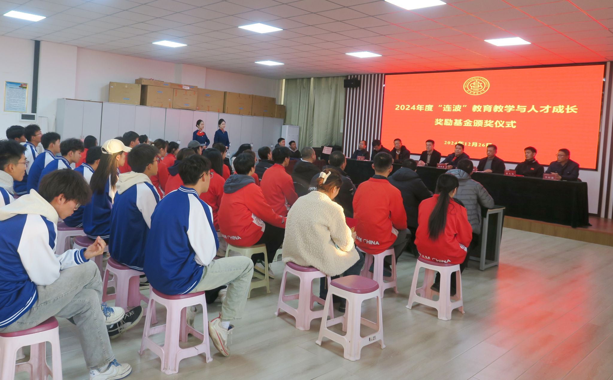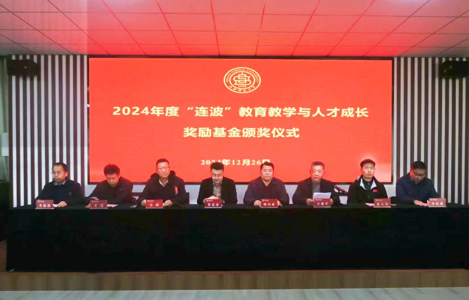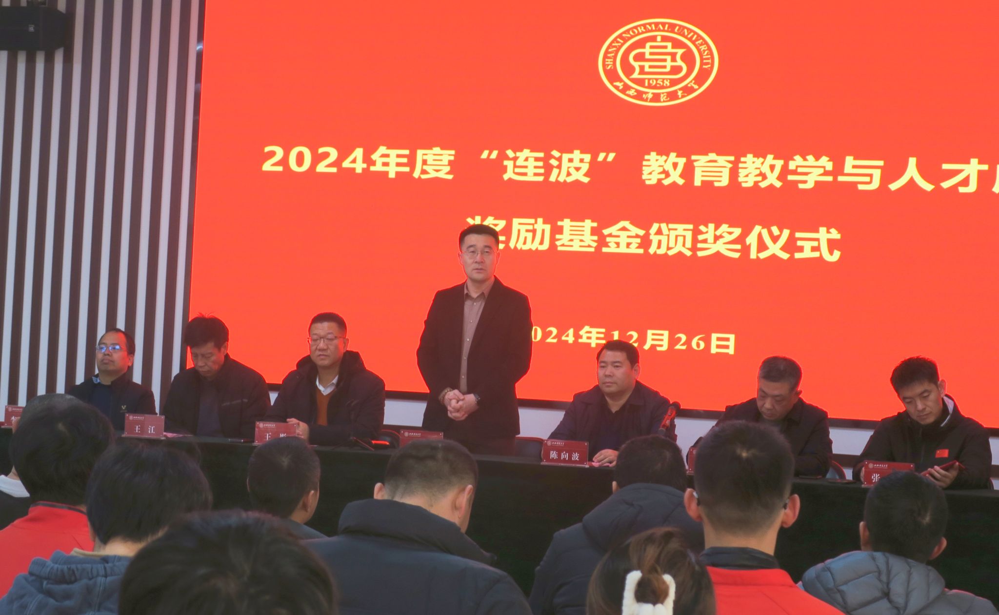 王彤院长宣读了2024年度“连波”教育教学与人才成长奖励基金的获奖名单,并向取得优异成绩的获奖老师及学生表示祝贺,并希望大家能够再接再厉,在新时代、新征程中谱写学院事业高质量发展新篇章。