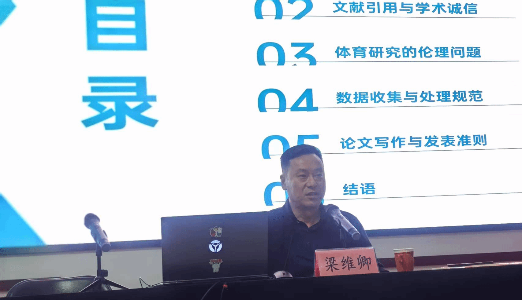 4月18日下午,德赢邀请校学报编辑部副主任、《体育研究与教育》副主编梁维卿老师作了题为《体育学术研究规范与科研伦理》的专题讲座。讲座由李海伟副院长主持,2024级全体研究生和部分导师聆听了讲座。