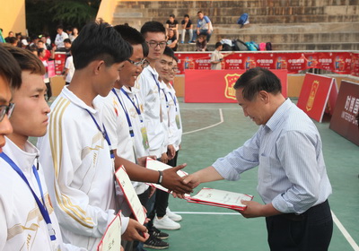 临汾市篮球协会副主席张建中为优秀志愿者颁奖