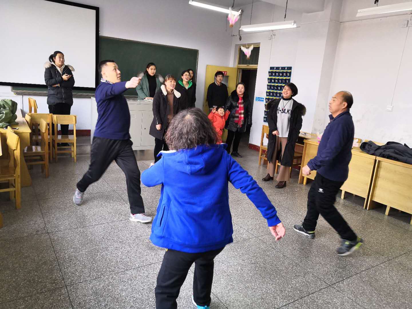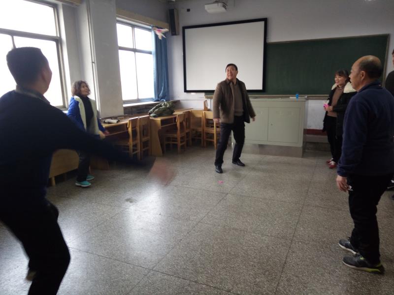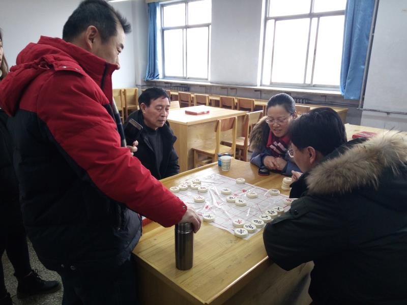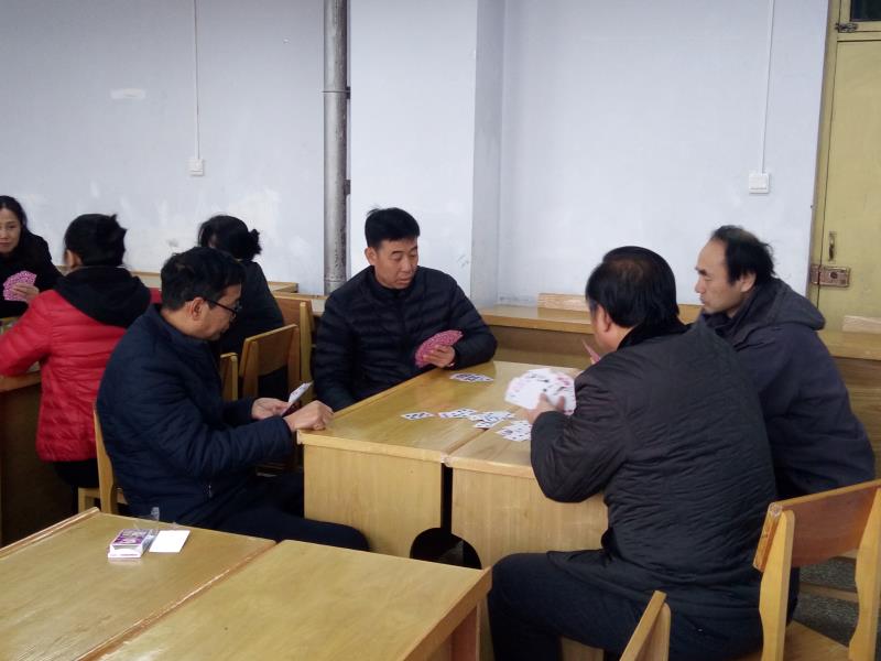 本次活动主要有扑克牌比赛、象棋比赛、踢毽子比赛。第一阶段的扑克与象棋比赛中,大家默契配合、陷入沉思,观者不语,斗智斗勇,精彩不断。第二阶段的踢毽子比赛中,大家相互配合,动作娴熟,稳扎稳打,欢声笑语,气氛热烈,观看者连连叫好。教职工们忙碌了一年,组织趣味运动会能够让大家忙里偷闲、积极放松,比赛间隙大家三三两两的聚集在一起,或共叙家常,或谈论平日工作,还有一些教师则做起了“摄像师”,用手机记录活动的各个精彩瞬间。在整个活动过程中,大家的脸上总是洋溢着欢快的笑容,达到了愉悦身心的良好效果。
