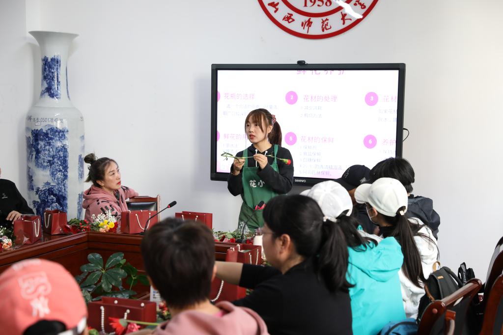 活动在歌声和花香中拉开序幕。专业花艺师对花卉的品种、配花的选择、颜色的搭配以及插花的错落进行了详细的讲解。女教职工们在轻松愉悦的气氛中进行现场修剪、插花、整枝,将普通的花草变成了一簇簇独具匠心的花艺作品。最后女教工们在《桃花朵朵开》的音乐舞蹈声中结束活动。(院工会供稿)