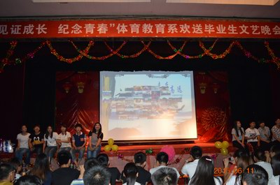 2015年6月11日晚七点半,由体育教育系党支部主办,团总支、学生会承办的“见证成长纪念青春”体育教育系欢送毕业生文艺晚会在大礼堂隆重举行。院党委书记李学刚、院长郑旗、院党委副书记段东升、体育教育系主任杨海龙、副主任张杰、辅导员刘林、郑志强观看了文艺表演。