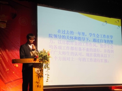 大会在庄严的国歌声中拉开了序幕。首先,学生会主席焦峰剑同学围绕上一学年学生会的组织机构、思想建设及特色活动三个方面进行了工作汇报。在回顾过去的同时,并对新一届学生会给予很高的期望。