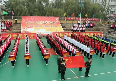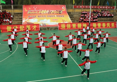 为纪念中国人民抗日战争胜利暨世界反法西斯战争胜利70周年,对广大青年学生进行爱国主义教育,同时检验教育教学成果,进一步提升学生的体育技能和水平。11月8日下午2:00,德赢在灯光球场隆重举行了2015级队列队形暨广播体操比赛。学院领导及各系、各科室负责人观看了本次比赛。由冯瑞老师担任大赛的裁判长。