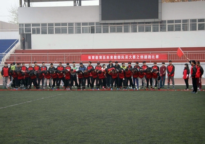 2015年11月21日上午10时,由体育教育系主办,体育教育系党支部、团总支、学生会承办的未来教师风采大赛之绑腿跑比赛在田径场隆重举行。体育教育系主任杨海龙、副主任张杰,辅导员吴合斌、郑志强及大一到大三全体同学参加观看了本次比赛。