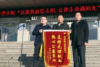 2016年1月6日上午,临汾市中心血站的采血车开进了山西师大德赢vwin体育官网,院团委在教学楼前组织了献血启动仪式。德赢vwin体育官网党委书记李学刚、院长郑旗、院党委副书记段东升及血站副站长景磊和德赢志愿者参加了此次活动。