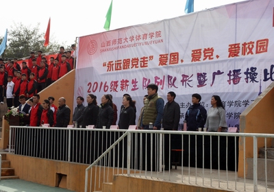10月30日下午两点德赢在灯光篮球场举办了以“永远跟党走,庆祝建党95周年、红军长征胜利80周年”为主题的2016级新生队列队形暨广播体操比赛。院党委书记李学刚老师、副书记段东升老师及各职能部门负责人出席了本次活动。