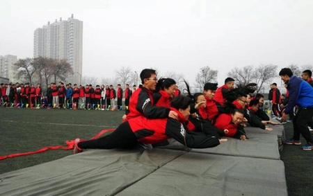 主持人宣布比赛开始,参加本次比赛的14个班级的选手已是整装待发,斗志昂扬的站在了起跑线上,裁判员哨声响起,便齐声喊着“一二、一二”的口号,手拉手,肩并肩,相互扶持,奋勇向前;场下的同学为他们呐喊助威,场上场下交相呼应,真正体现了团结,拼搏的体育人精神。