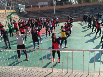 根据教育部、国家体育总局、共青团中央共同决定,旨在落实《关于加强青少年体育增强青少年体质的意见》精神,结合《大学生体质健康标准》的实施,全面推动阳光体育运动在德赢的深入开展,吸引广大青少年学生走出宿舍、走向操场、走到阳光下。3月30日中午,德赢vwin体育官网团委组织各班班委和教学骨干在灯光篮球场进行了以“阳光、健康、快乐”为主题的阳光体育早操活动之《瑜伽健身操》的培训。本次阳光体育早操活动培训的总指挥由龙勋老师担任,校健美操高水平运动队全体运动员为大家讲解和动作示范。