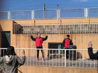 健美操队队员为同学们培训