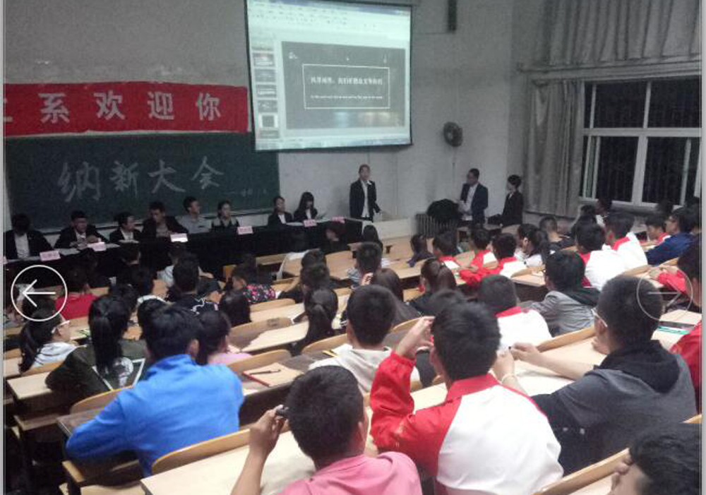 按照纳新大会程序,首先,由体教二系学生会主席刘根延对大一新生表示欢迎并简述了体育教育二系学生会的主要职能及发展历程。由团总支书记李薇对系团总支职能及人员构成进行简介。学生会下设各部门负责人对本部门的职责和主要工作进行了介绍,并对学生会选人、用人提出具体要求。其次,由17级新生自愿申报自己喜欢的部门,并进入自荐和提问环节,大一新生都踊跃参加积极发言,表达了服务师生,锻炼自我的意愿。之后各部门负责人进行了点评。最后由上一届主席孔栎澎做了大会总结。