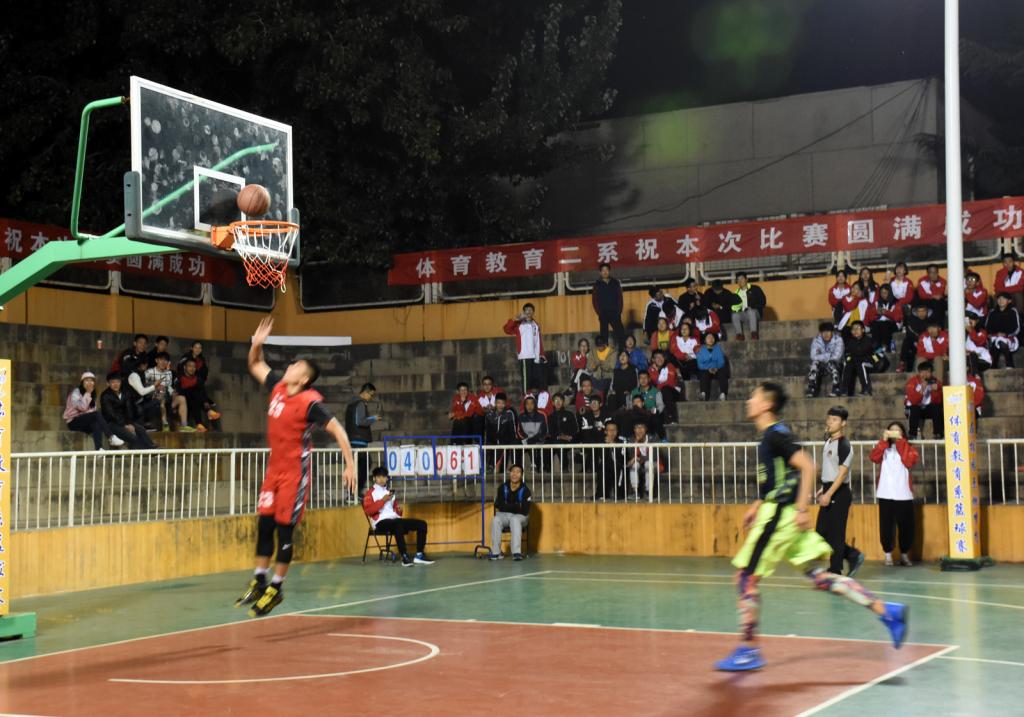 首战以教工队对阵一、二年级联队,院党委书记李学刚老师为比赛开球。比赛正式开始后,两队比拼异常激烈,一、二年级联队首先投球得分,教工队也不甘示弱,多次抢断、盖帽等点燃了现场气氛。上半场结束,教工队暂时领先。中场的劲舞与动感音乐将全场氛围推向高潮。下半场一、二年级联队打出了小高潮,多次远投三分命中。教工队及时调整战术,继续拉大比分差距,最终教工队以69:48赢得了本次比赛的胜利。