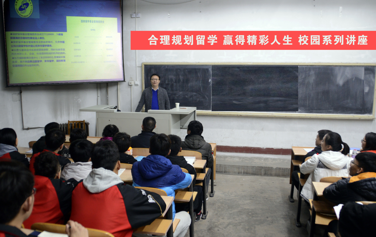 本次讲座赵勇老师首先从国家公派留学的定义、留学发展趋势、国家公派留学政策三方面给于同学们出国留学的初步认识,并以实际数据向同学们展示了近年来出国留学的良好发展前景。随后,赵老师分析了当前出国留学的现状、时代背景和出国留学理念,为同学们解答了为什么要出国留学、获得出国留学机会的益处和怎么样才能出国留学三方面,同时赵老师还为同学们简单介绍了出国留学常规国家的基本情况和如何正确选择留学国家。讲座最后,赵老师向同学们强调了学习和人生规划的重要性,注重形成以梦想、情怀、感恩、自信为主的自我认知,希望山西的大学生能够以更加自信的姿态走出山西、走向世界。