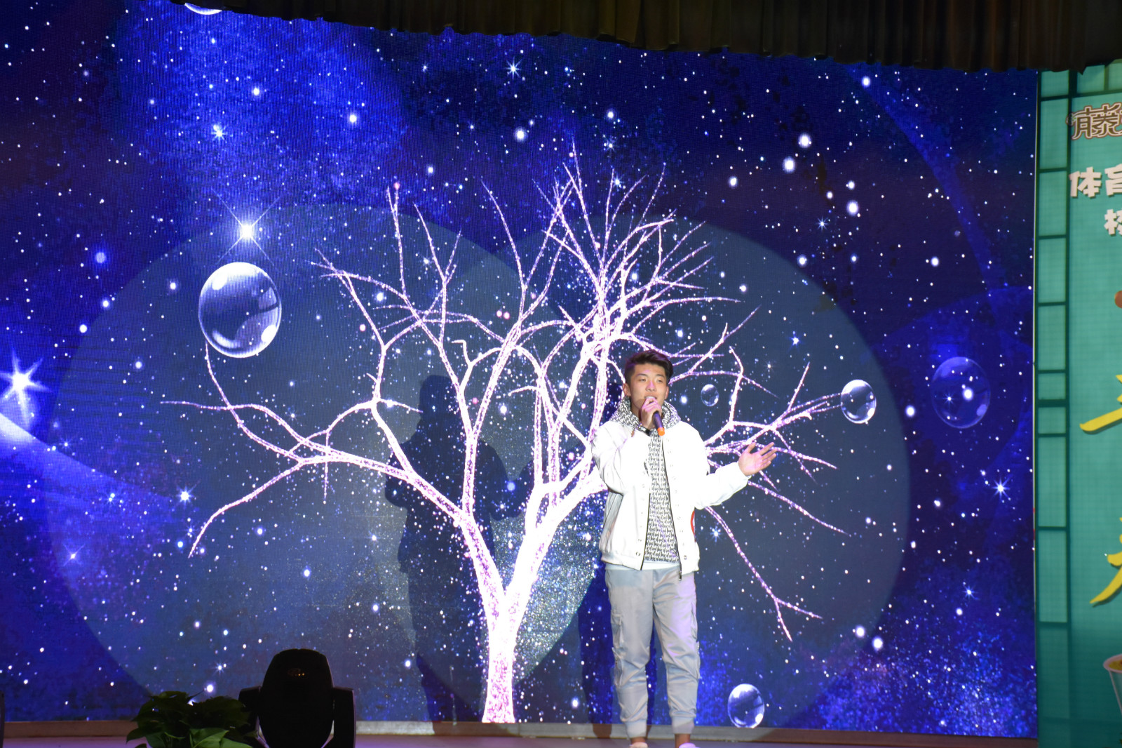 一曲《老男孩》大合唱正式拉开了本次大赛的帷幕,激起了现场每位观众的热情。选手自选歌曲虽然有不同的风格,但都展示出了他们强大的实力,也正是这种演唱实力和舞台表现力,将大赛一次次推向高潮。比赛期间,为加强兄弟院校的交流学习,特别邀请了山西体育职业学院与德赢跳绳队带来了花样跳绳表演,文理学院舞蹈协会带来了舞蹈表演。经过激烈角逐,民族传统体育系1502班王军港获得大赛第一名,体育教育系1601班杨晶获得大赛第二名,体育教育系1502班张怡婷获得大赛第三名,运动训练系1703班李俊博获得最佳人气奖。最后,出席的领导老师为获奖选手颁奖并合影留念。