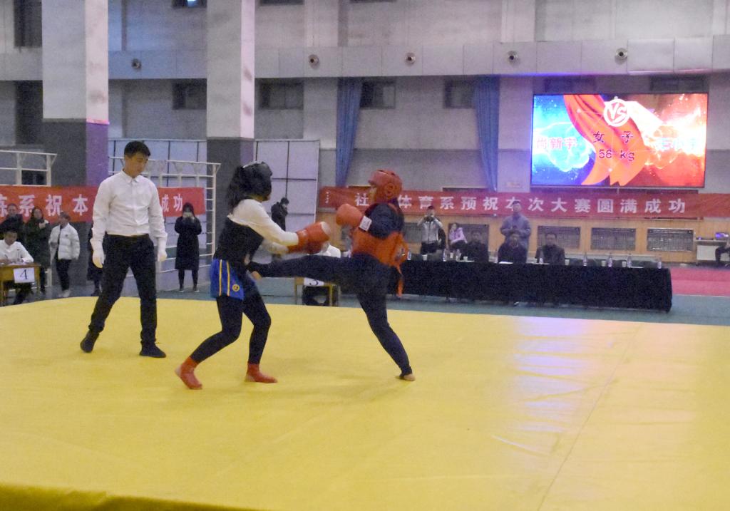 12月13日晚19:00,武术套路比赛拉开帷幕。武术套路分为长拳、南拳、太极、形意、传统一类拳、传统二类拳、自选刀、自选剑、自选长器、太极剑等十三个比赛项目。赛场上武术健儿们斗志昂扬,动作连贯行云流水,引来了观众的阵阵喝彩与掌声。武术散打大赛设有男女两个组别(其中女子52kg、56kg、60kg、60+kg;男子55kg、60kg、65kg、70kg、75kg、80kg、85kg、90kg、95kg、95+kg)。比赛过程中选手们思维冷静,身手敏捷,击打部位准确,点到即止,尽显文明尚武风范。大赛于12月21日圆满落幕。最终体育教育系、体育教育二系、民族传统体育系、运动训练系、社会体育系代表队获得了体育道德风尚奖。闫泽军、穆治光、杨松林等十三名同学获得了武术套路各单项冠军。于铭睿、常宇鹏、裴超磊等十三名同学获得了武术套路各单项亚军。高瑞鹏、王伟诚、柳旭东等十四名同学获得武术散打冠军。张厚毅、刘振彪、王涛等十四名同学获得武术散打亚军。出席决赛的领导老师为所有获奖团体和选手颁奖。
