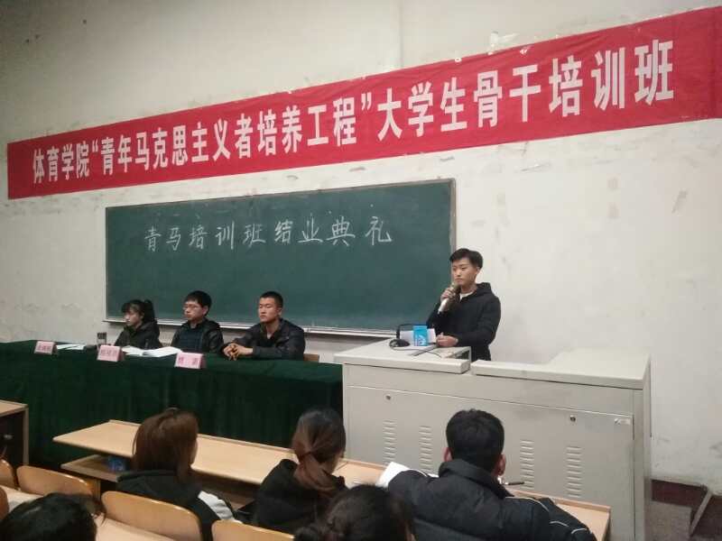 “青马工程”大学生骨干培训班结业典礼在激昂的国歌声中正式拉开帷幕。首先,院学生会主席贾雷对培训开展情况进行了工作汇报并宣读了优秀学员标兵名单和优秀学员名单,他指出本次培训由理论学习、视频学习以及能力培养三个模块构成,青马培训是德赢vwin体育官网团学干部培训体系中的重要组成部分,也是学生干部交流的重要平台。随后,学员标兵代表体育教育系1601班黄鹏华、社会体育系1601班王漫同学从培训的收获、思想的转变、日常心得三方面以学生干部的角度出发,表示要努力做到“立身百行,以学为基”,既要读万卷书,又要行万里路,不断提高自身的综合素质。