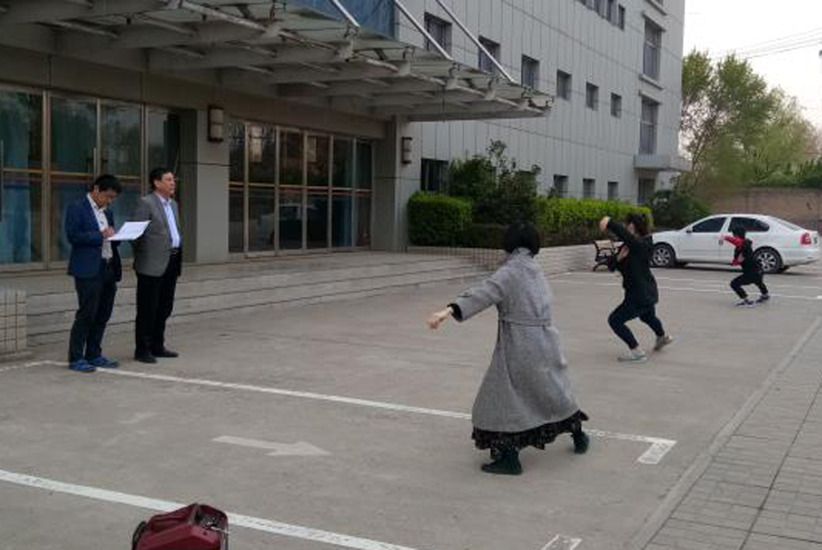 在检查过程中,郑院长认真仔细观看了同学习练习情况,对同学们半个月的练习成绩表示了肯定,同时也指出,对一些难度系数大的动作,有的同学还做的不是很到位,需要勤加练习。郑院长也希望同学们能够继续积极主动练习,特别是学生干部要起带头作用,组织好、管理好团体操训练。总教练赵海涛老师则从专业的角度对同学们的练习情况进行了点评,并提出了改进意见。