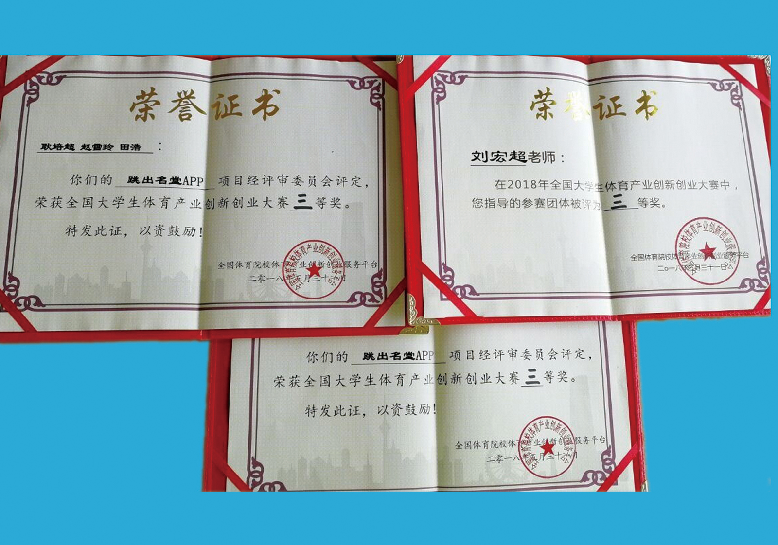 5月28日至31日,由全国体育院校体育产业创新创业服务平台主办、天津德赢vwin体育官网承办、国家体育总局科教司、天津市教育委员会、天津市体育局指导的2018年全国大学生体育产业创新创业大赛在天津德赢vwin体育官网隆重举行。德赢vwin体育官网团委积极组织,经过前期线上线下宣传、报名和全国评选,社会体育系1501班的耿培超、田浩等同学的参赛项目《跳出名堂APP》(指导教师刘宏超)进入了全国复决赛。由院团委副书记程祖浩带队代表德赢vwin体育官网参赛,经过激烈的角逐和严格评选,项目荣获了全国大学生体育产业创新创业大赛三等奖,实现了新的突破。