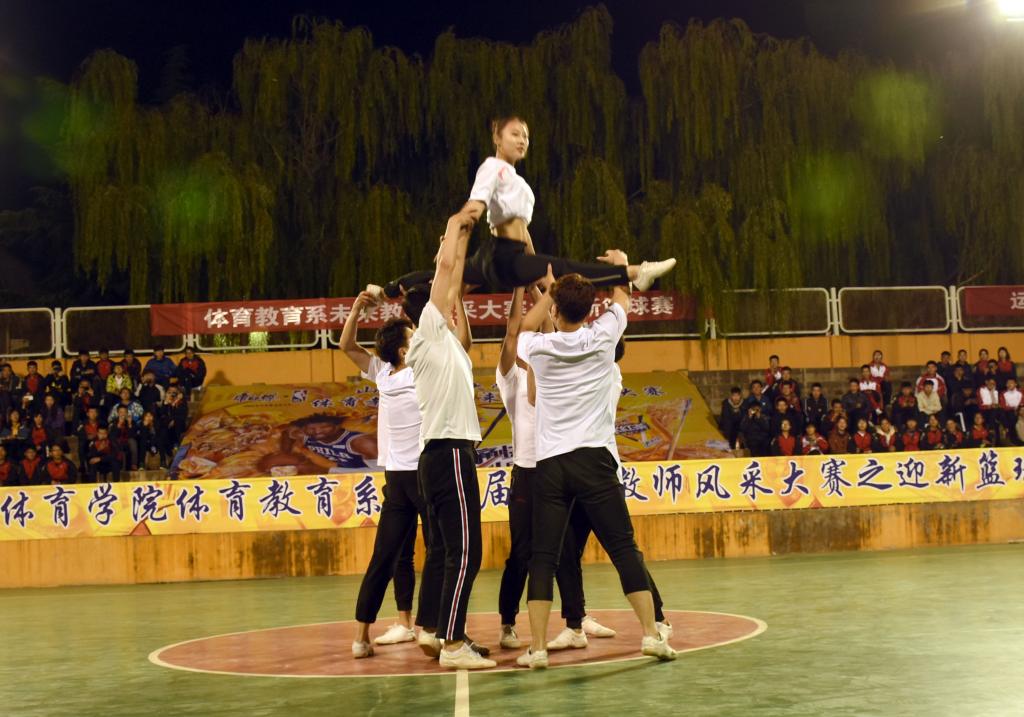 别样的风采,高昂的斗志。10月11日傍晚7点,由体育教育系党支部主办,系团总支、学生会承办的第八届未来教师风采大赛之迎新篮球赛的开幕式在灯光球场拉开帷幕。院党委书记李学刚、副书记孙学虎、院团委副书记程祖浩、辅导员赵海涛、闫文菁参加此次活动。