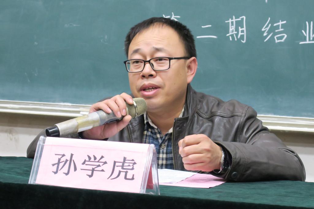 院党委副书记孙学虎老师发表了重要讲话。孙书记首先代表学院恭喜第二期大学生骨干培训班顺利结业。同时对第三期大学生骨干培训班的开班仪式表示热烈祝贺。他指出,“青马工程”不仅要培养出一大批掌握党的理论创新成果、理想信念坚定的学生干部,还要进一步加强学生干部的团队领导力、实践拓展能力和志愿服务精神,提升学生干部队伍的综合素质。他对参加培训的学生干部提出了三点希望,即希望大家做一个“先行者”, 在做坚定的青年马克思主义者上先行,努力在全体学生中更好地发挥模范带头作用;做一个“引领者”,要引领更多的同学成为这些优秀精神传统和价值理念的弘扬者;做一个“践行者”,进一步坚定理想信念、坚守共产主义信仰,积极主动作为,养成知行合一、拒绝空谈、用心做事、作风务实的人格品质,真正成为社会主义核心价值观的践行人。同时他还希望学生干部真正能够从勤学、修德、明辨、笃实这八字箴言做起。勤学格物,让学习成为一种人生习惯;修德诚意,让德行成为一种人生追求;明辨自持,让明择成为一种人生智慧;笃实行久,让实干成为一种人生气度。