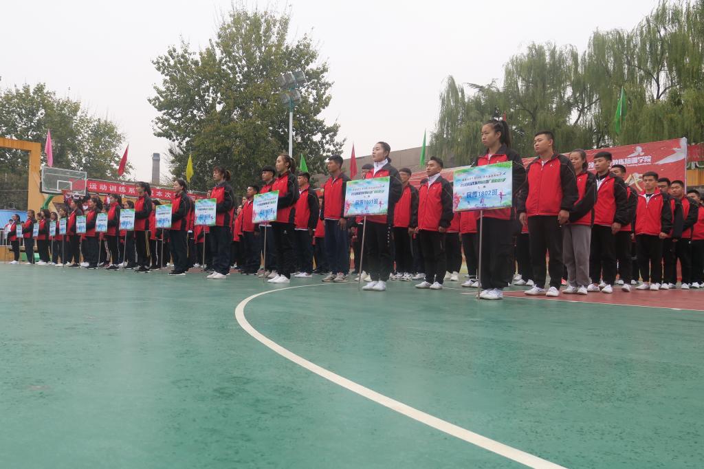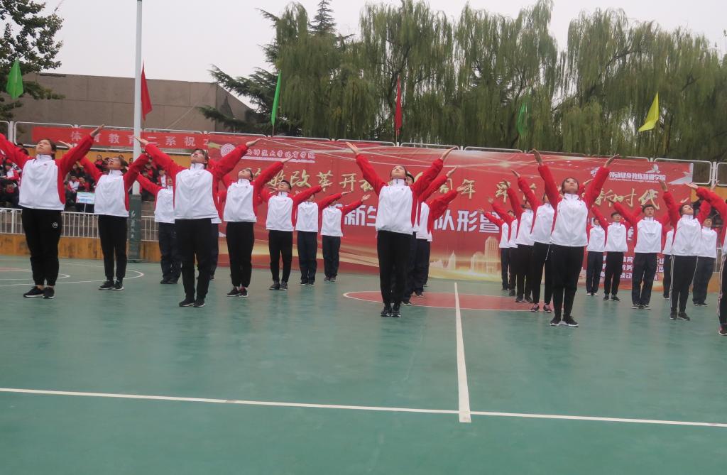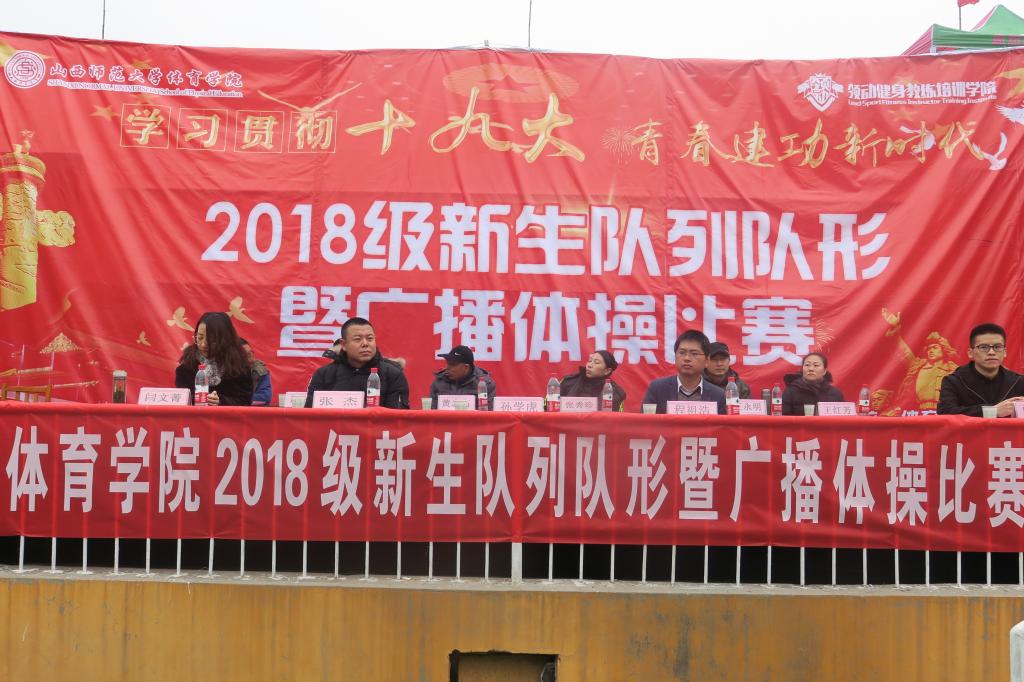 为庆祝学校六十周年华诞,庆祝改革开放40周年,深入学习贯彻落实党的十九大精神,积极推进全院体育教学实践活动的开展,11月10日14:30,学院举办以“学习贯彻十九大·青春建功新时代”为主题的2018级新生队列队形暨广播体操比赛。院党委副书记孙学虎,各系部科室主要负责人和专职辅导员出席,张秀珍、王永明、王红芳、黄志高、赵海涛老师担任比赛裁判员,2018级共计13个班级新生参加比赛。
