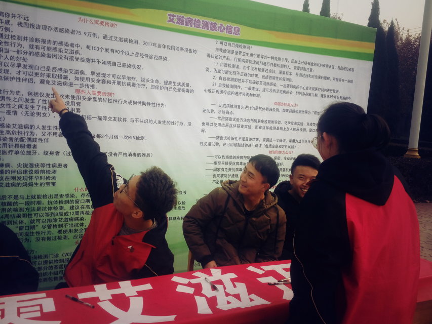 活动现场通过设立咨询台、摆放展板、悬挂横幅、发放宣传册多种形式向学生普及防治艾滋病的基本知识,以引起大学生对预防艾滋病的重视,引导大学生树立性健康意识,呼吁大学生珍爱生命,远离艾滋病。志愿者们面带微笑,为每一位同学认真讲解有关艾滋病的知识,同学们在摆挂着“行动起来,向零艾滋迈进”的条幅上进行签字。