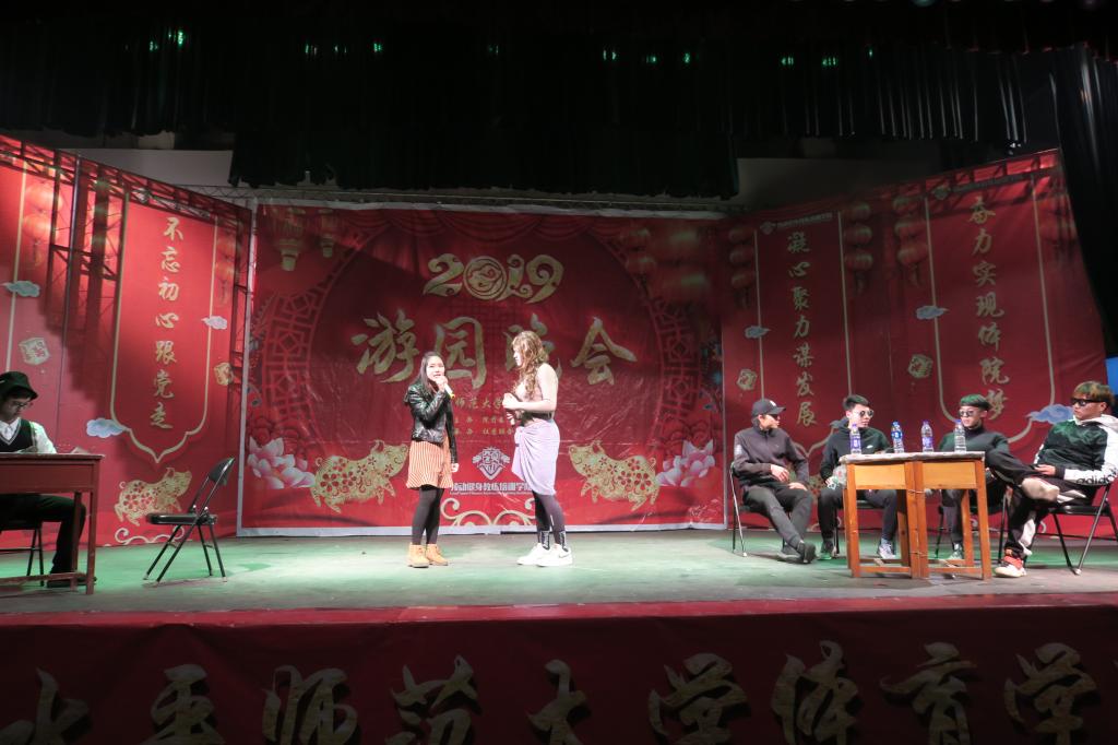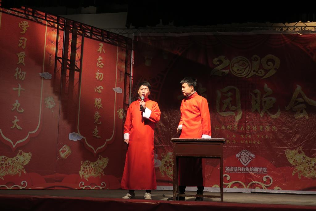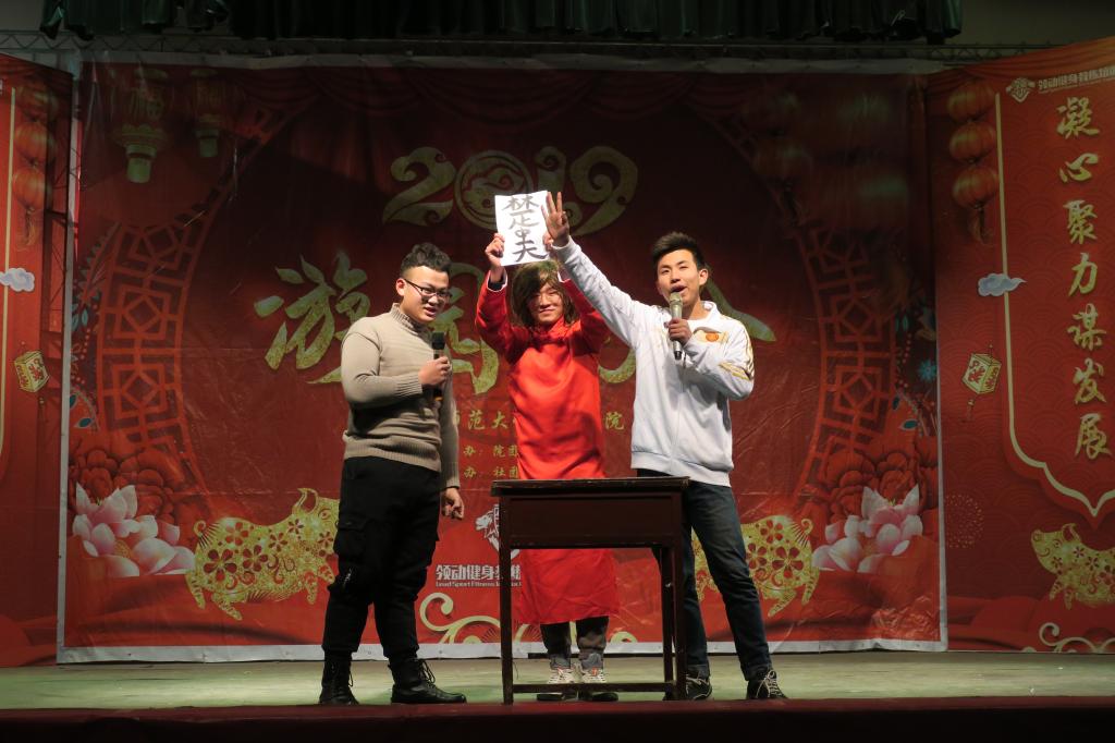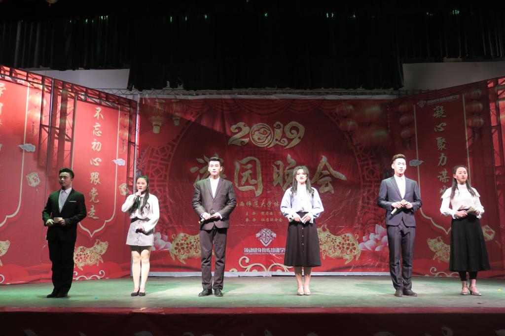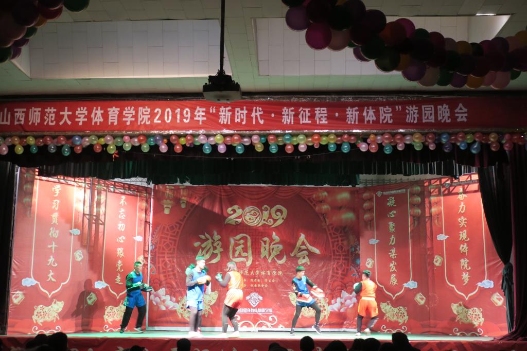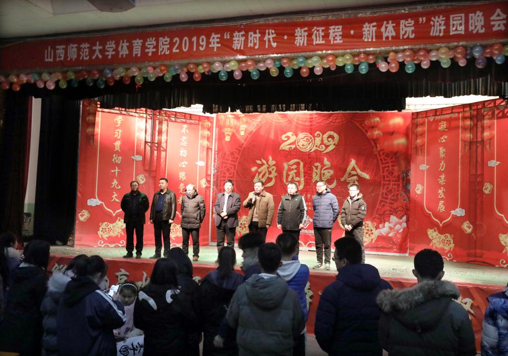 2018年12月31日,由德赢vwin体育官网团委学生会主办,学生社团联合会承办的“新时代 新征程 新体院”游园晚会暨新年团拜会在大礼堂举行,全院400余名师生参与了此次活动。游园晚会包括节目表演和互动游戏两部分,历时三个半小时,游园晚会结束后举行新年团拜会。