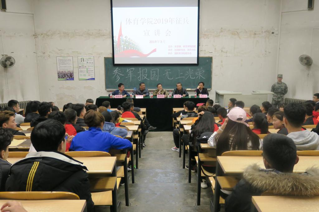 为推进大学生应征入伍工作,帮助大学生了解、掌握应征入伍的相关政策和流程,鼓励学生积极应征入伍,献身国防事业。3月14日19:00,由德赢vwin体育官网武装部、德赢vwin体育官网团委主办,院社团联合会、德赢vwin体育官网民兵网络信息分队承办,国防军事拓展协会协办的“参军报国,无上光荣”2019年征兵宣讲会在阶一教室举行,尧都区西街办事处武装部部长郭利林、德赢vwin体育官网武装部军事教研室主任李文、专武干部任金虎、德赢vwin体育官网保卫科科长郝宝喜和特邀嘉宾临汾市爱尔眼科医院院长刘云峰出席宣讲会,全院200余名同学聆听了宣讲会。会议由院团委副书记程祖浩主持。