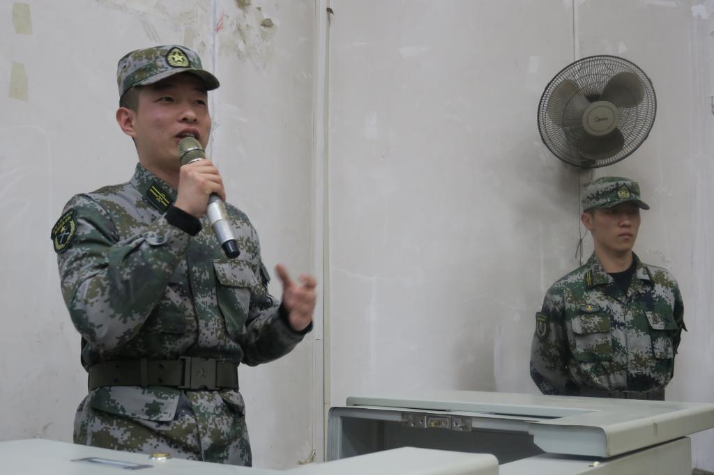 会议在庄严民兵之歌中拉开序幕。首先,民兵网络信息分队队长社体1601班梁少杰同学进行宣讲。他简要介绍了国防的重要意义和我国的军事国防力量取得的进步,并分析了大学生应征入伍对个人发展十大作用。作为退伍大学生,他通过观看视频、结合自身经历向同学们讲述了军营生活的风采,并对应征入伍的基本条件进行了说明,他鼓励符合条件的同学能够积极踊跃报名参加,献身祖国的国防事业。
