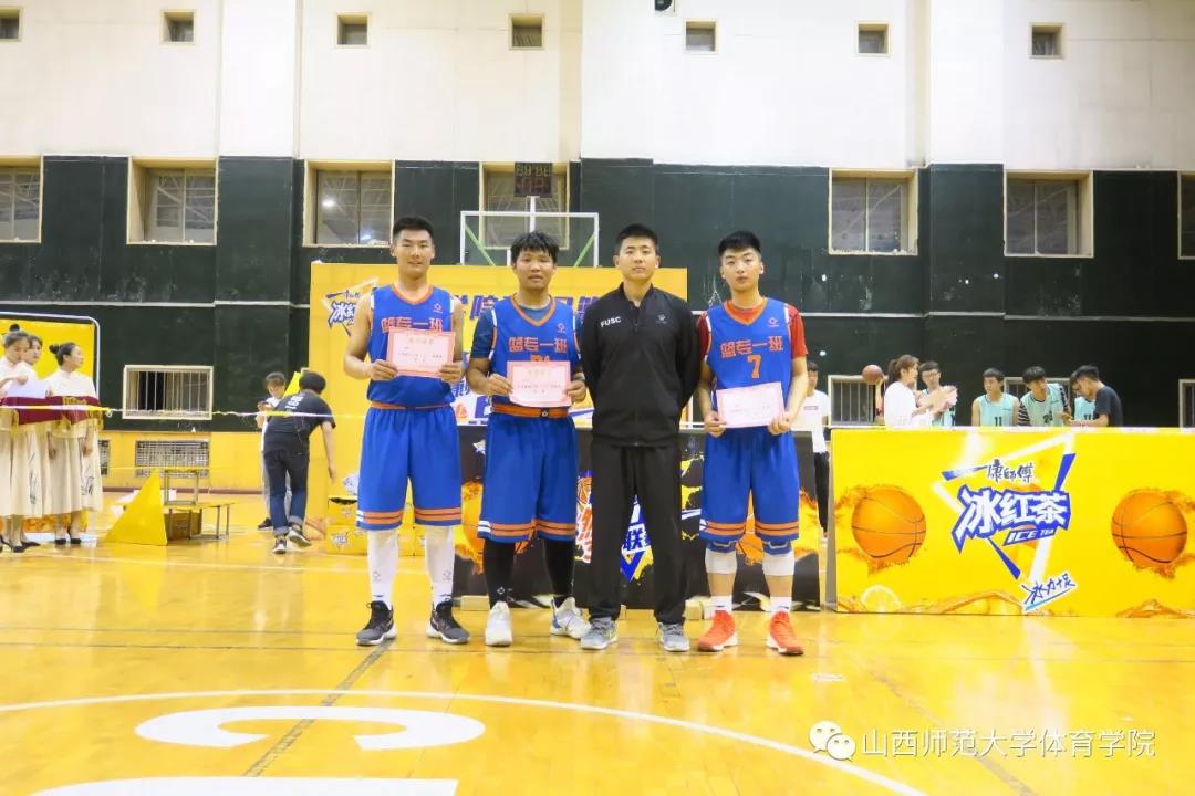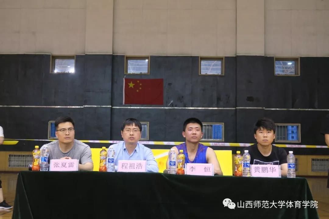 为了纪念五四运动100周年和新中国成立70周年,进一步丰富校园文化生活,打造校园精品活动,院团委学生会主办的2019年3V3篮球比赛,经过两天激烈较量,4月25日晚上19:00,在德赢vwin体育官网综合馆二层举行了决赛暨颁奖仪式,院团委副书记程祖浩老师、国家级篮球裁判、青年教师李恒老师,青年教师张夏雷老师参加。参加本次比赛的34支队伍150余名球员也观看了决赛。文理1603班杨浩、文理1702班李启瑞、体教1603班赵伟、文理1702班李飞扬担任决赛的裁判员。