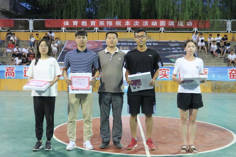 6月4日至17日,由体育教育系党支部主办,系团总支,学生会承办的体育教育系欢送大四篮球系列赛在德赢vwin体育官网灯光球场举行。副院长卢向阳老师、院团委副书记程祖浩老师、武术与民族传统体育系副主任赵海涛老师、院团委专职辅导员闫文菁老师出席并为获奖选手颁奖。