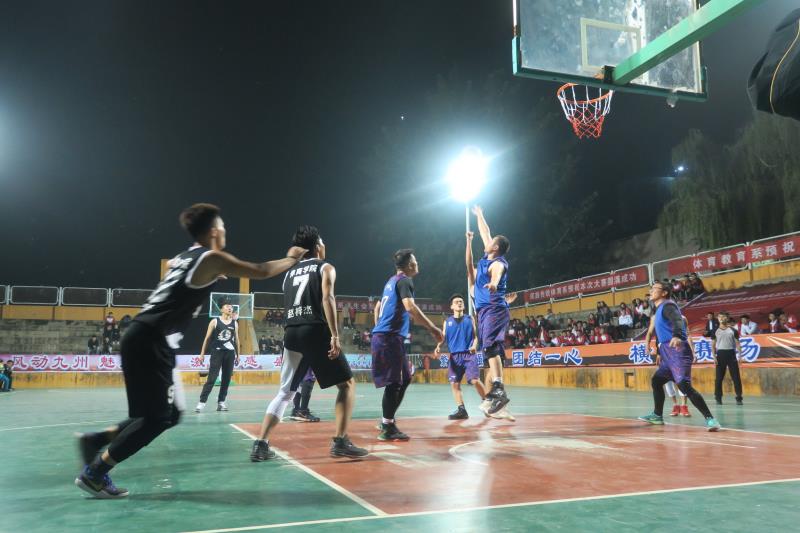 此次比赛由教职工康之梦兴邦队对战大一新生联队,随着裁判一声哨响,对战双方迅速展开了激烈的比拼,教职工之间的配合十分默契,刚开场便拿下全场比赛第一球,大一联队也毫不示弱,多次贡献精彩进球,上半场你来我往,双方打成平手。中场休息时间,大一新生带来了精彩的表演,赢得了阵阵掌声。下半场开始,对战双方依旧毫不懈怠,局势焦灼,最后康之梦兴邦队以50:47赢得本场比赛,全场气氛达到高潮。