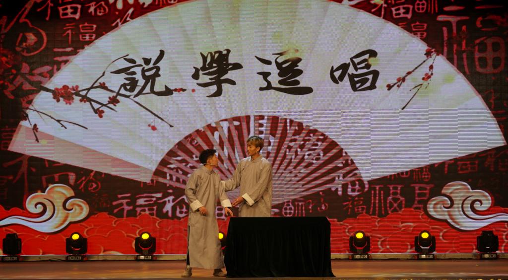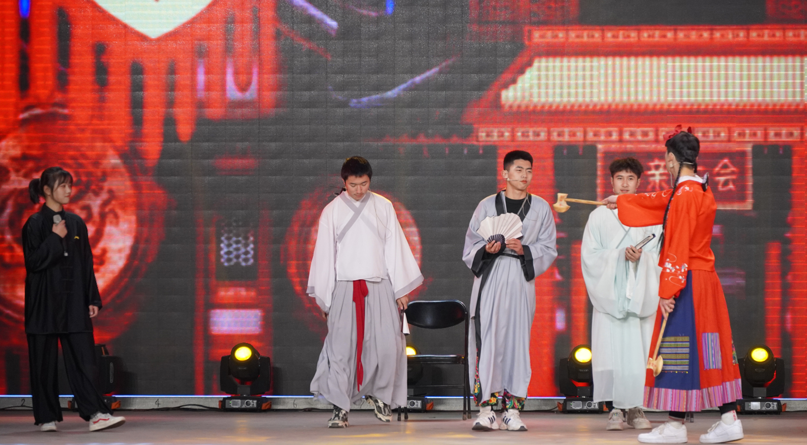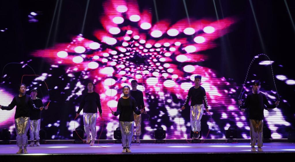 社会体育系丁赛、刘舰同学带来的相声表演《疫不容辞》,以学生视角讲述了疫情防控中发生一些趣事,引导同学们遵守疫情防控各项规定;体育教育系李时进等同学带来的舞蹈《文艺复兴》充满活力,引爆全场,展现了体育学子的青春力量;轮滑协会姚腾等同学带来的小品《四大才子》,通过幽默诙谐的表演,给大家留下深刻印象;运动训练系史嘉鑫同学演唱的《世间美好与你环环相扣》,优美的旋律与歌声,触动了我们内心最深处那份柔情;由院工会选送,郭丽娟等老师带来的健美操表演《快乐绽放》,她们在课堂中默默无闻、兢兢业业,在舞台上尽情绽放、活力四射,用舞蹈的健康、时尚与动感尽情诠释美好的青春活力,尽情绽放生活的多姿多彩;民族传统体育系程轩、刘琦同学带来的相声表演《江湖》,让我们体会到每个人心中那百味杂陈的江湖;花式跳绳协会石林卫等同学们带来的跳绳表演《jump!jump!》,炫酷的动作、默契的配合,吸引了全场眼球;体育教育系刘垚等同学们带来的《倍儿爽》,动感的节奏,完美诠释了愉悦、活泼的气息;运动训练系王力同学一曲《你一定要幸福》,感染人心;最后,由民族传统体育系带来的武术表演《中华魂》,尽显中华武术的博大精深,精湛的技艺赢得阵阵掌声,将晚会推向了高潮。