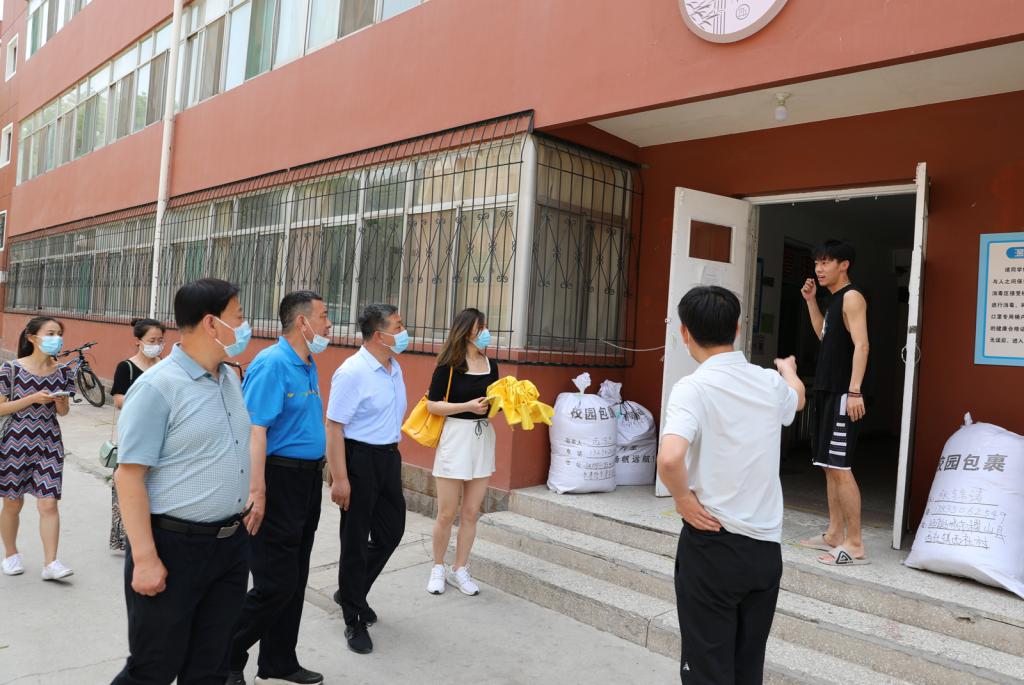 王军峰处长及学院领导老师一同走访了学生宿舍。走访过程中,王军峰处长及院领导与在校学生进行了亲切交谈,了解近期同学们的学习生活情况,耐心解答大家的问题和疑惑。在毕业生宿舍,老师们与毕业生进行了深入交流,了解了大家对临时分配宿舍是否适应、四六级考试准备是否充分、家庭所在地及回家方式以及毕业后对未来的规划等情况。在走访宿舍的过程中,各位领导提醒同学们要结合当前疫情防控形势增强安全意识,加强沟通交流,有问题及时向辅导员反应,相互团结,共同学习,共同进步。