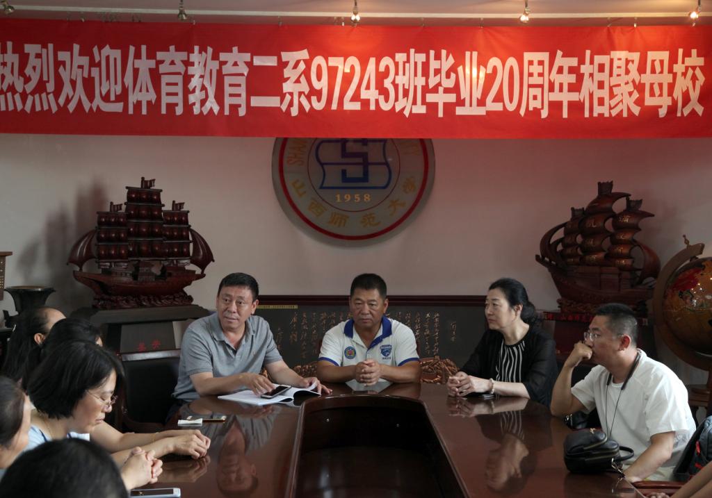 七月的临汾骄阳似火、热浪滚滚。7月13日,德赢体育教育二系97243班毕业20周年重返母校,与学院领导、老师们共聚一堂,共同回忆20年前在体院学习生活的美好时光。院长郑旗、李吉慧教授、时任二系副主任焦绿青、辅导员吴合斌参加了座谈会,院党委书记李学刚在驻地宾馆看望了校友。