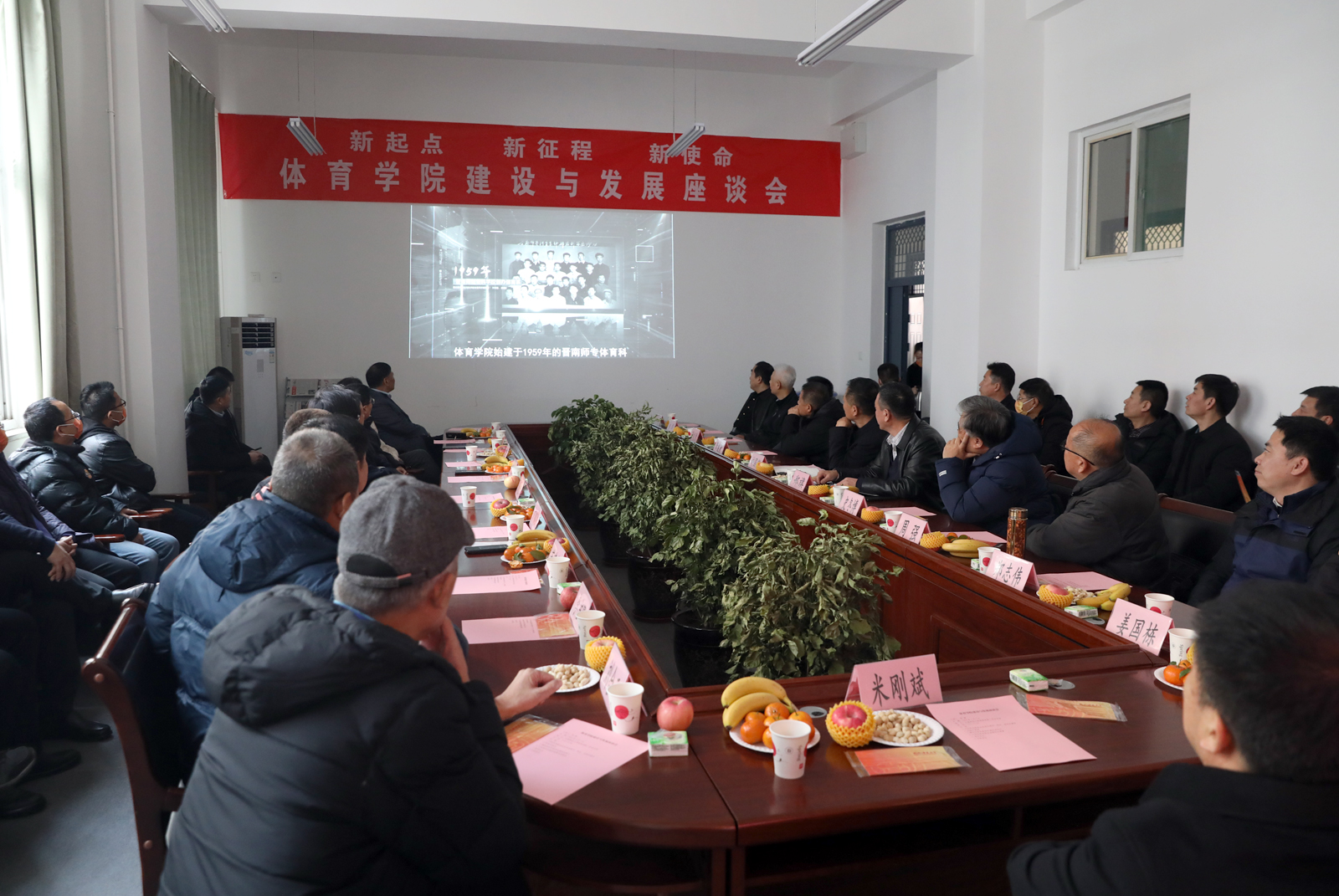 1月7日下午,德赢vwin体育官网建设与发展座谈会在南校区7号楼二层会议室召开。校党委书记张晓永出席会议并讲话。全国高等学校体育教学指导委员会委员、山西财经大学原党委书记常乃军,太原校友会会长、山西经济管理干部学院党委书记丁怀民,长治学院校长曹景川,兄弟院校代表山西财经大学德赢vwin体育官网院长李健康,太原市校友代表、德赢vwin体育官网历任部分领导、国内合作处处长董俊荣及院领导、教授、系部科室负责人、青年教师代表参加座谈会。会议由院长郑旗主持。