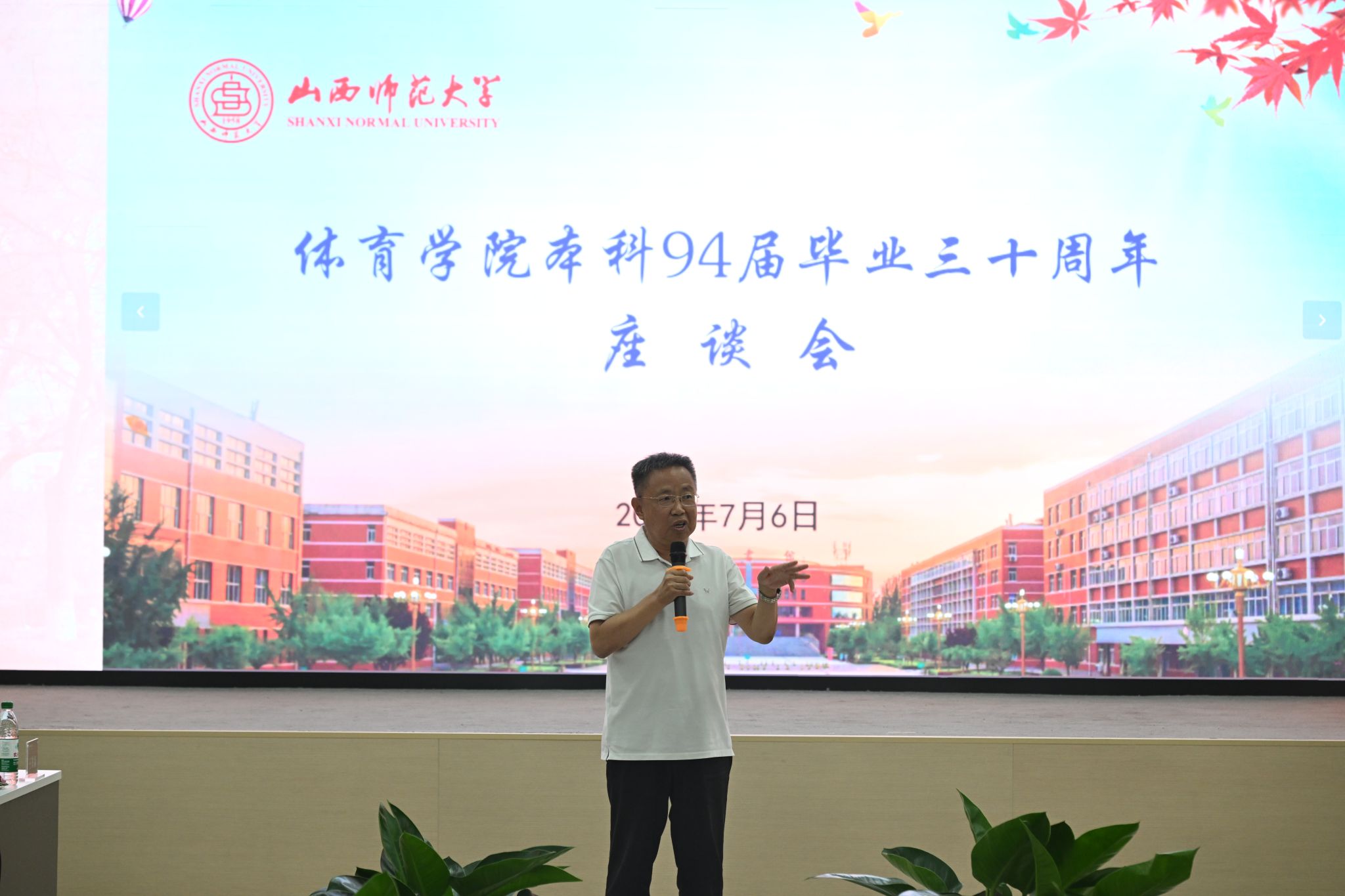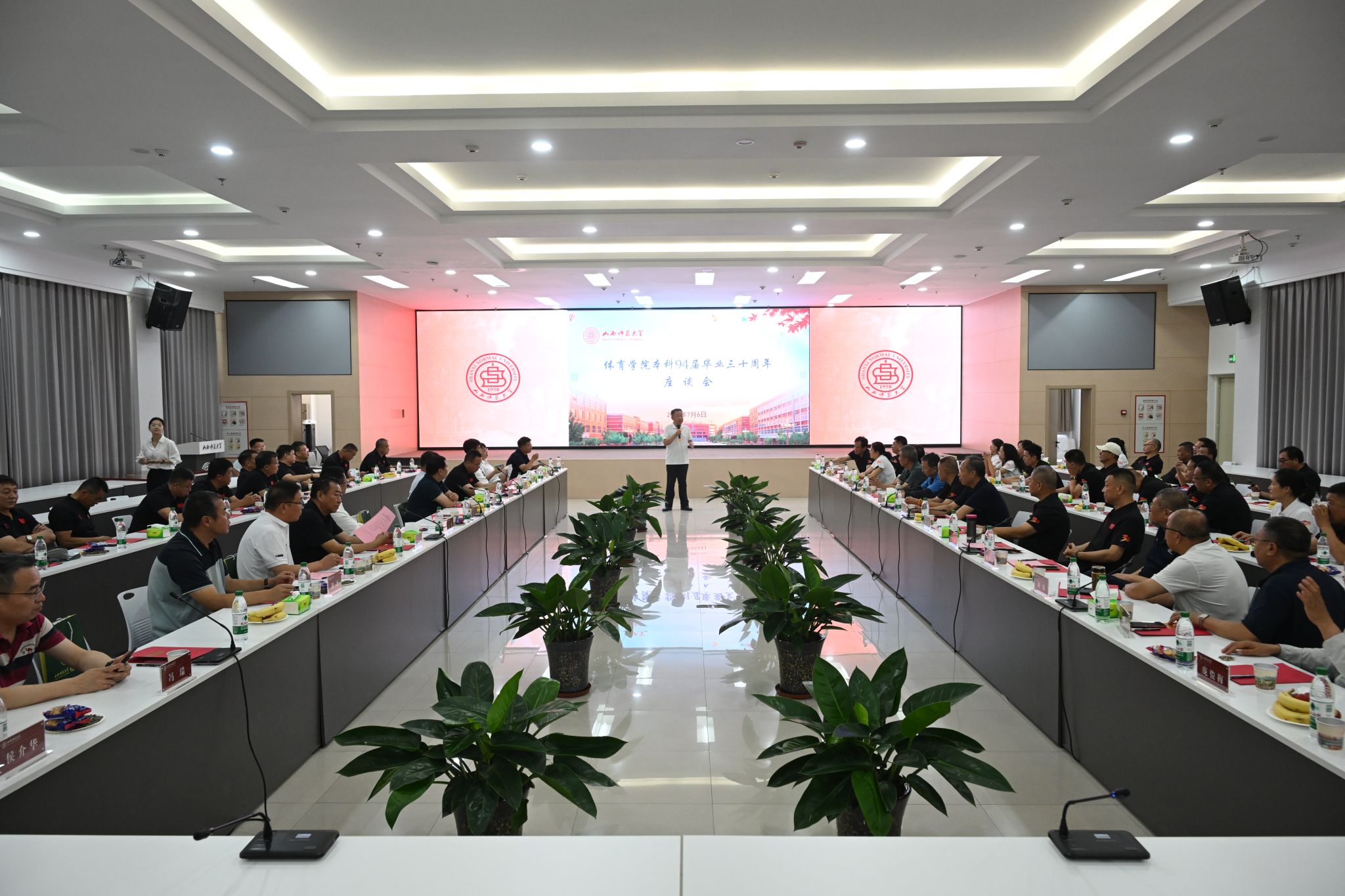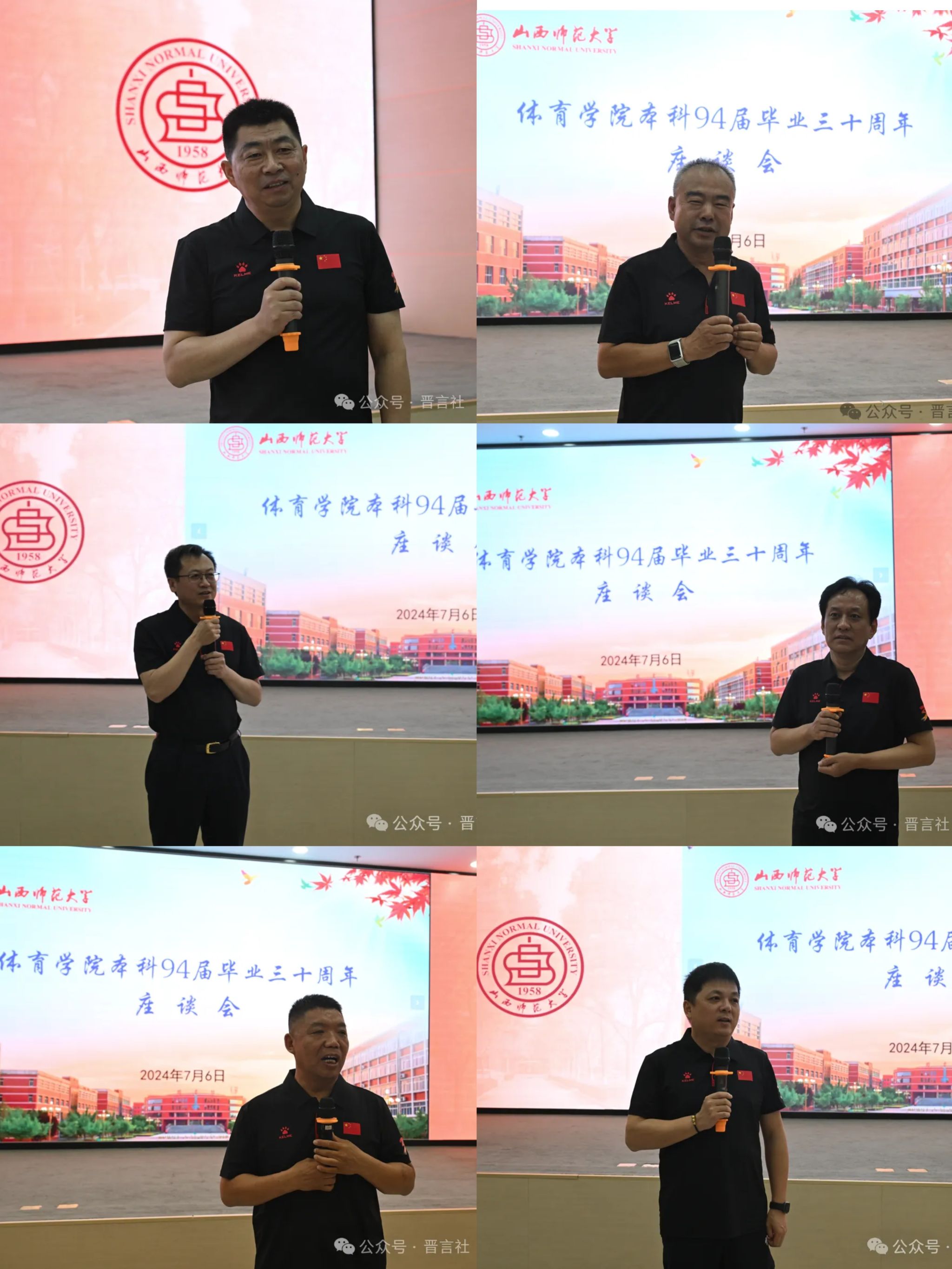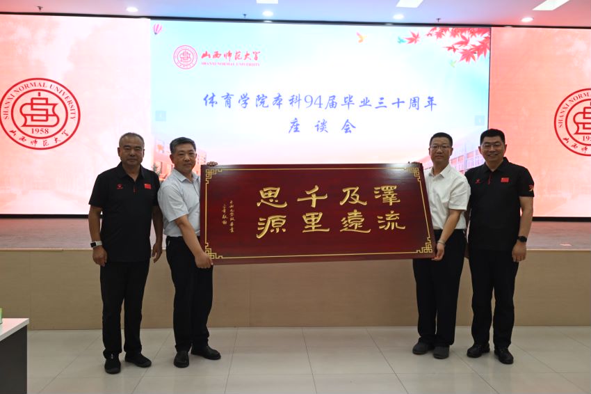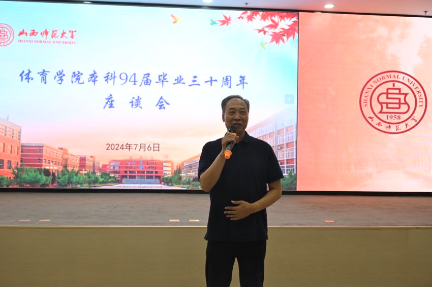 在座谈会的温馨氛围中,校友们敞开心扉,畅所欲言,深情地表达了对母校无尽的怀念与由衷的感激之情。校友代表赵大可、刘海元等深情回顾了求学期间的师生情、校友情,并表达了对母校和恩师的感恩、感激和美好祝福。常乃军、李吉慧两位老师在发言中表示“走进师大门,一生师大人;走出体院门,终身体院情”。他们呼吁大家不仅要接续师生情谊,更要以实际行动回报母校,为学校的发展贡献自己的力量。王云代表学校向毕业三十年返校的校友们致以热烈的欢迎,并简要介绍了学校近年来在教育教学、学科建设、科研创新、校友工作等方面取得的显著成就,他强调,学校的发展离不开广大校友的支持与帮助,希望大家能够常回母校看看,共同为学校的未来发展贡献智慧和力量。最后,座谈会在热烈的气氛中圆满结束,与会人员纷纷合影留念,共同铭记这一难忘的时刻。